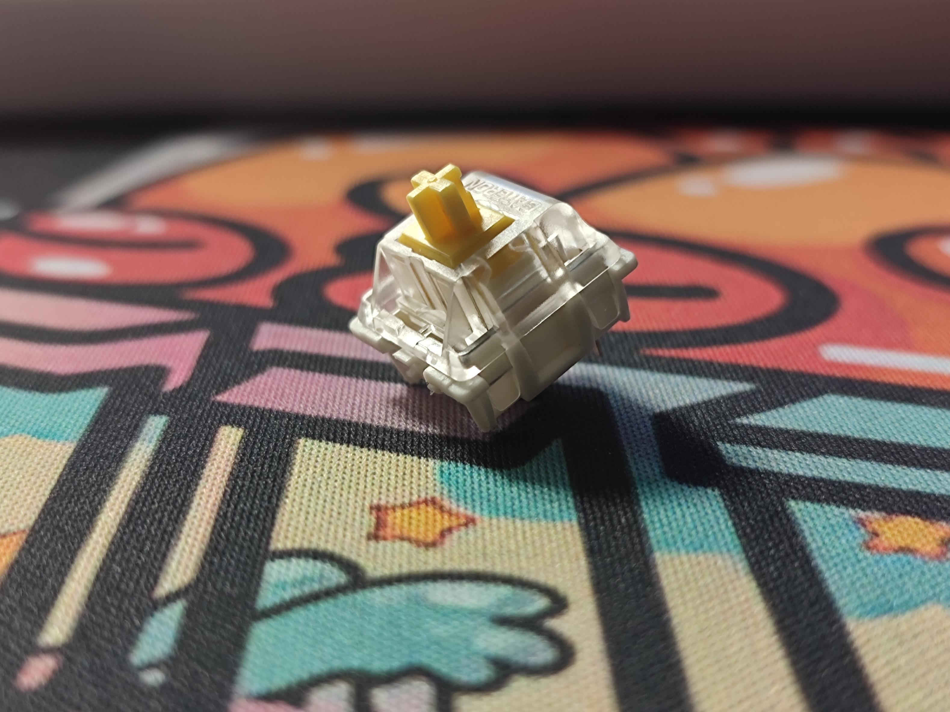 G黃PRO上蓋爲透明PC材質,所以即使在沒有配備導光柱的情況下實際RGB亮度還是不弱的;軸芯採用黃色POM材質,能很明顯區分出Gpro不同軸體之間的區別。