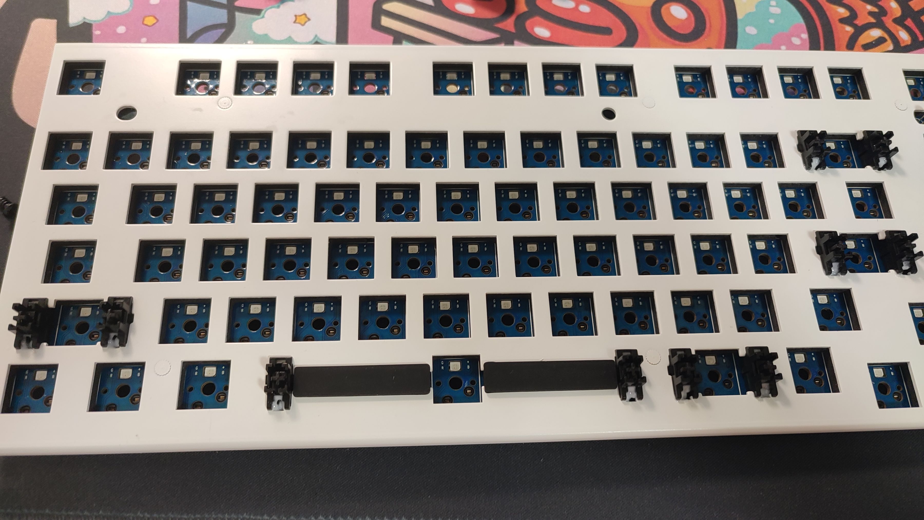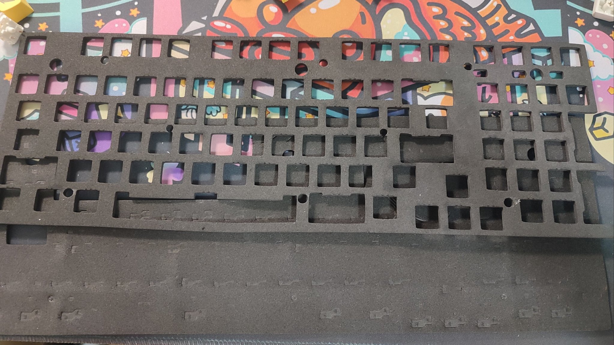 填充這塊稍微差了一些,不僅用的是EVA材質的棉,並且還缺少了軸下墊。對手感和聲音要求比較高的可以自行購買PORON棉三件套進行更換。