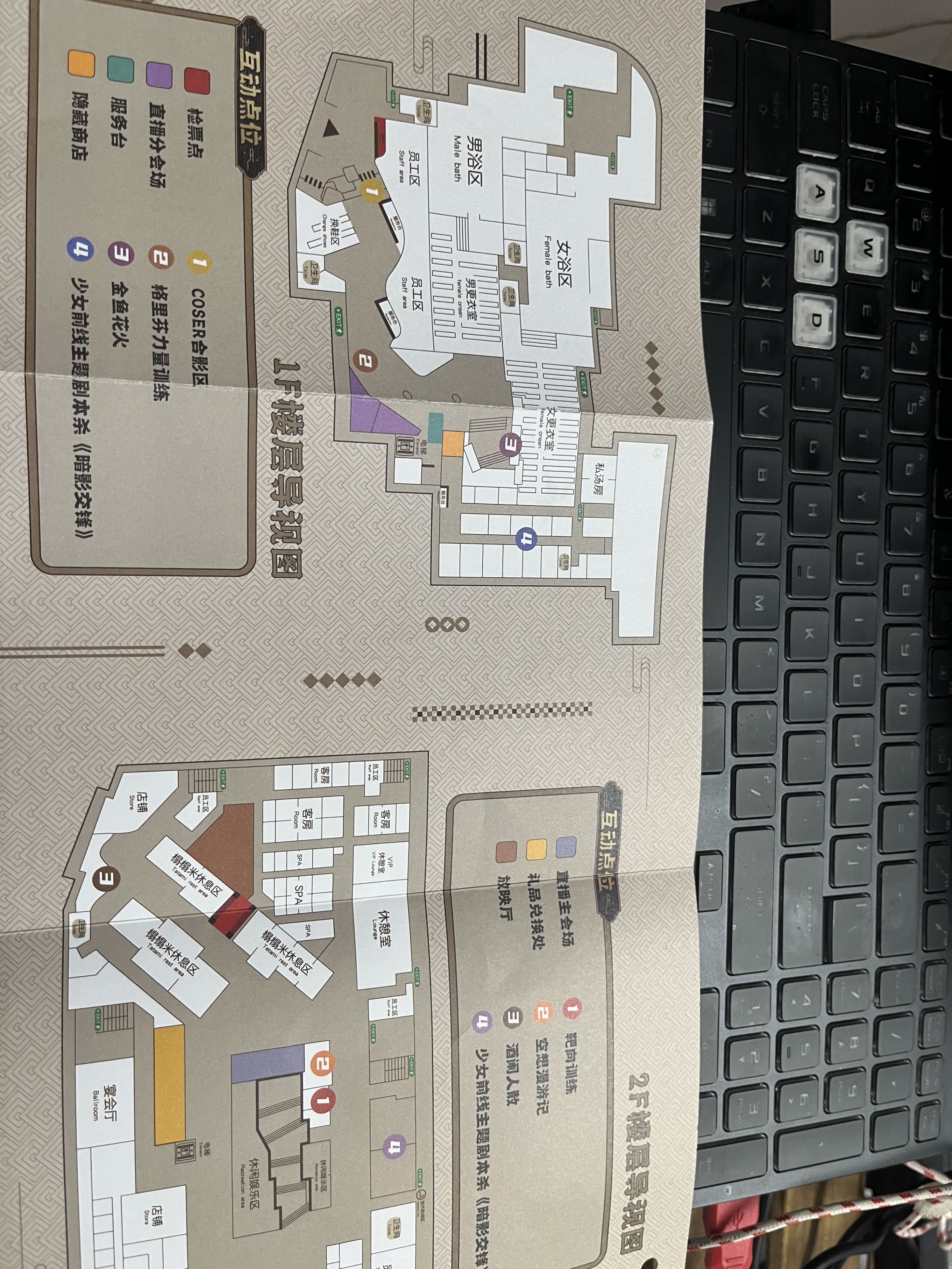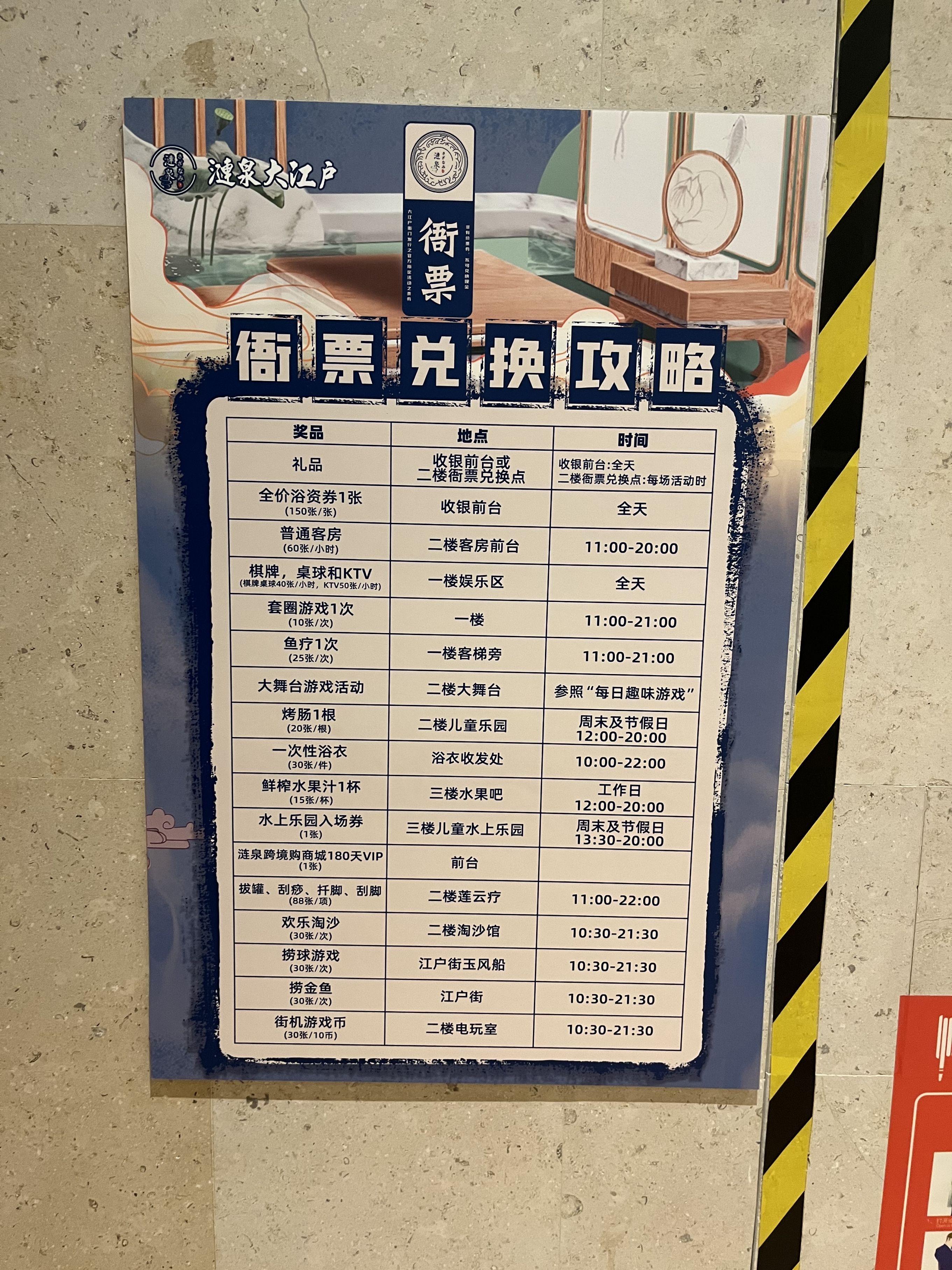 四點鐘,我們準時來到了漣泉大江戶的閔行區門店,我已經迫不及待要和coser合影……要泡個舒服的澡了!進了門店,我們先是給前臺看了電子券(188買的第二天的票,但是很值,第一天還有羽中團隊見面會),隨後領了手牌和限定周邊套組(包括浴衣、扇子、繪馬、鼠標墊和帆布袋),換了鞋,拿了浴袍,便直奔澡堂了。