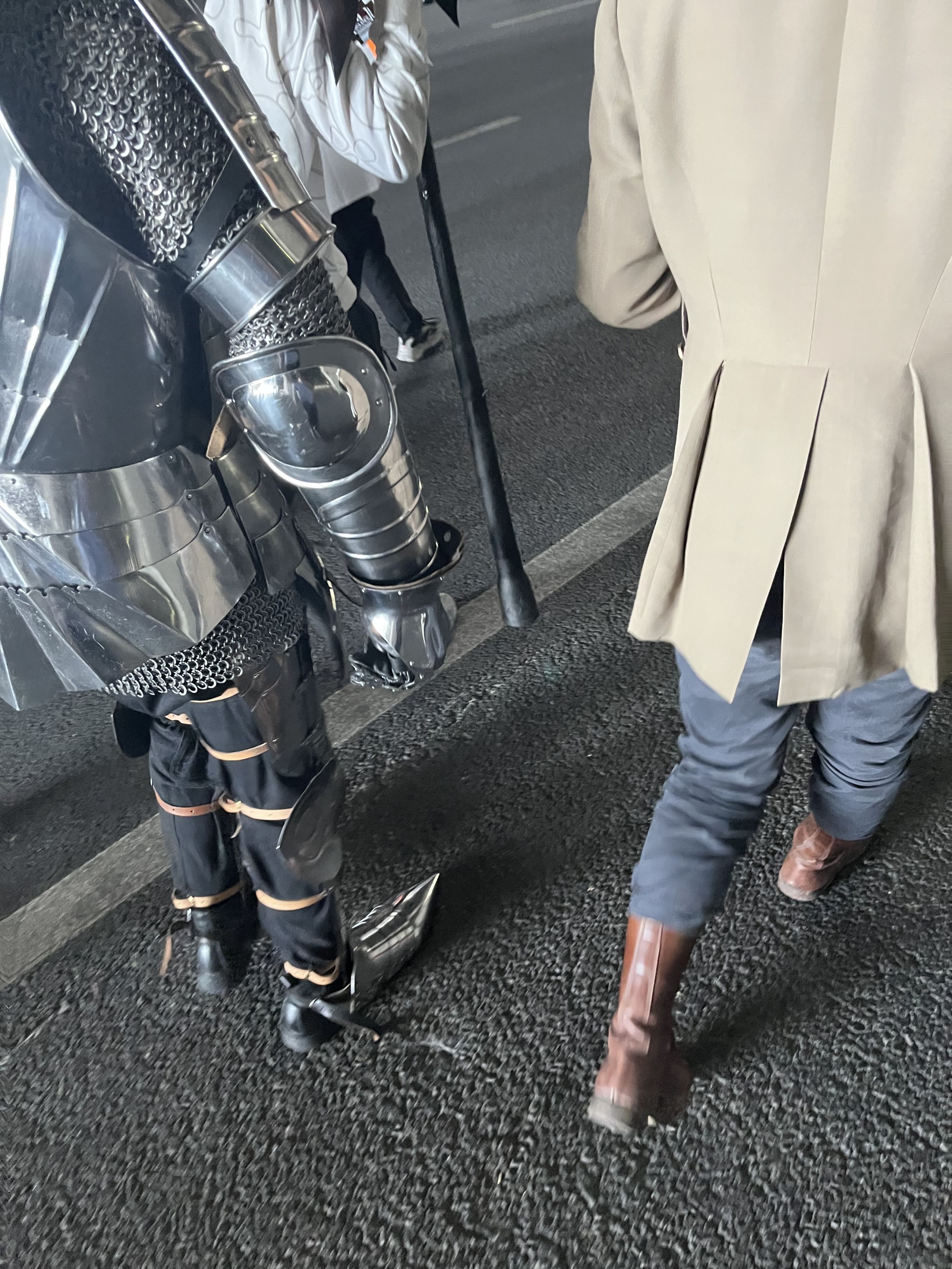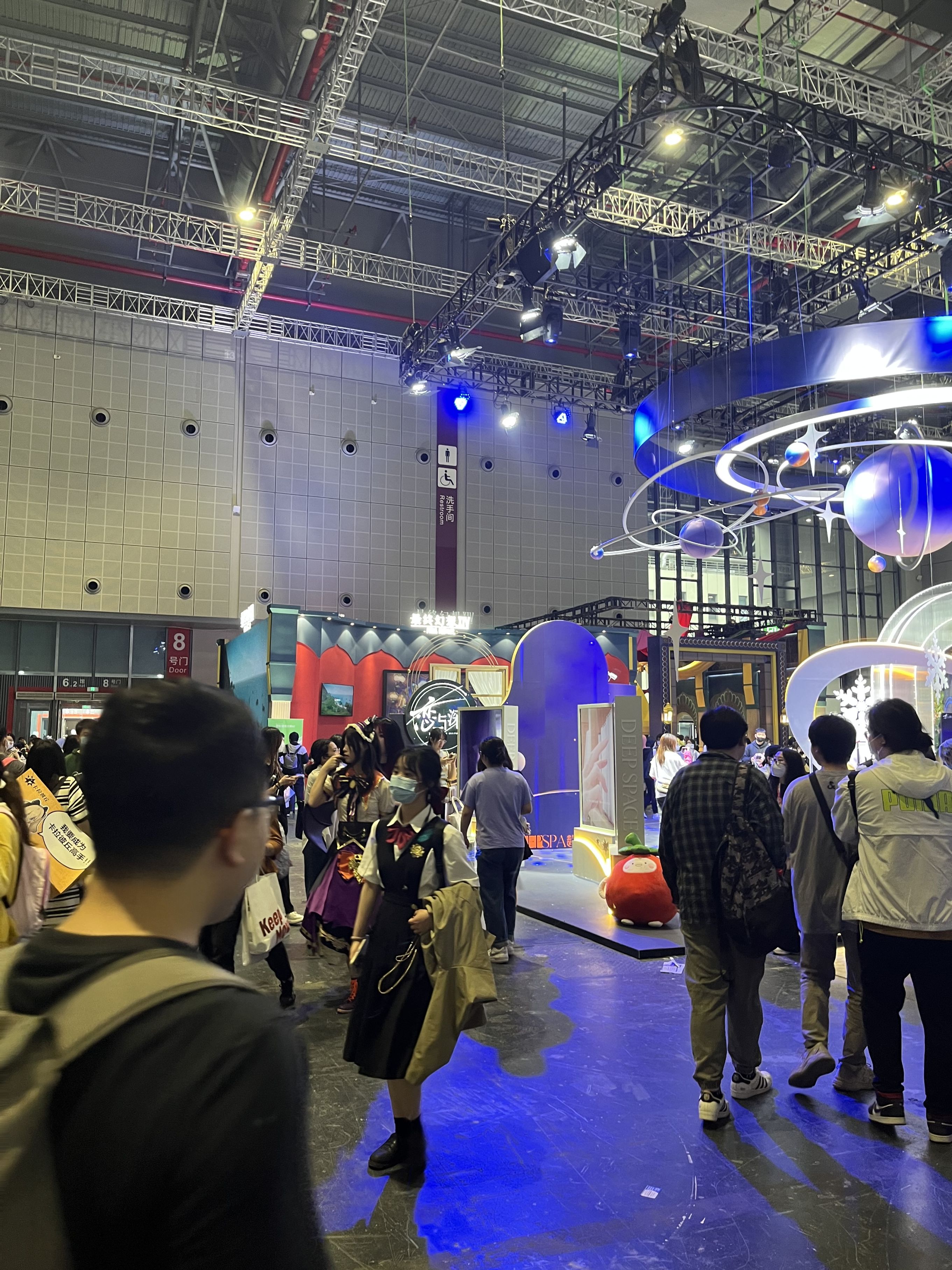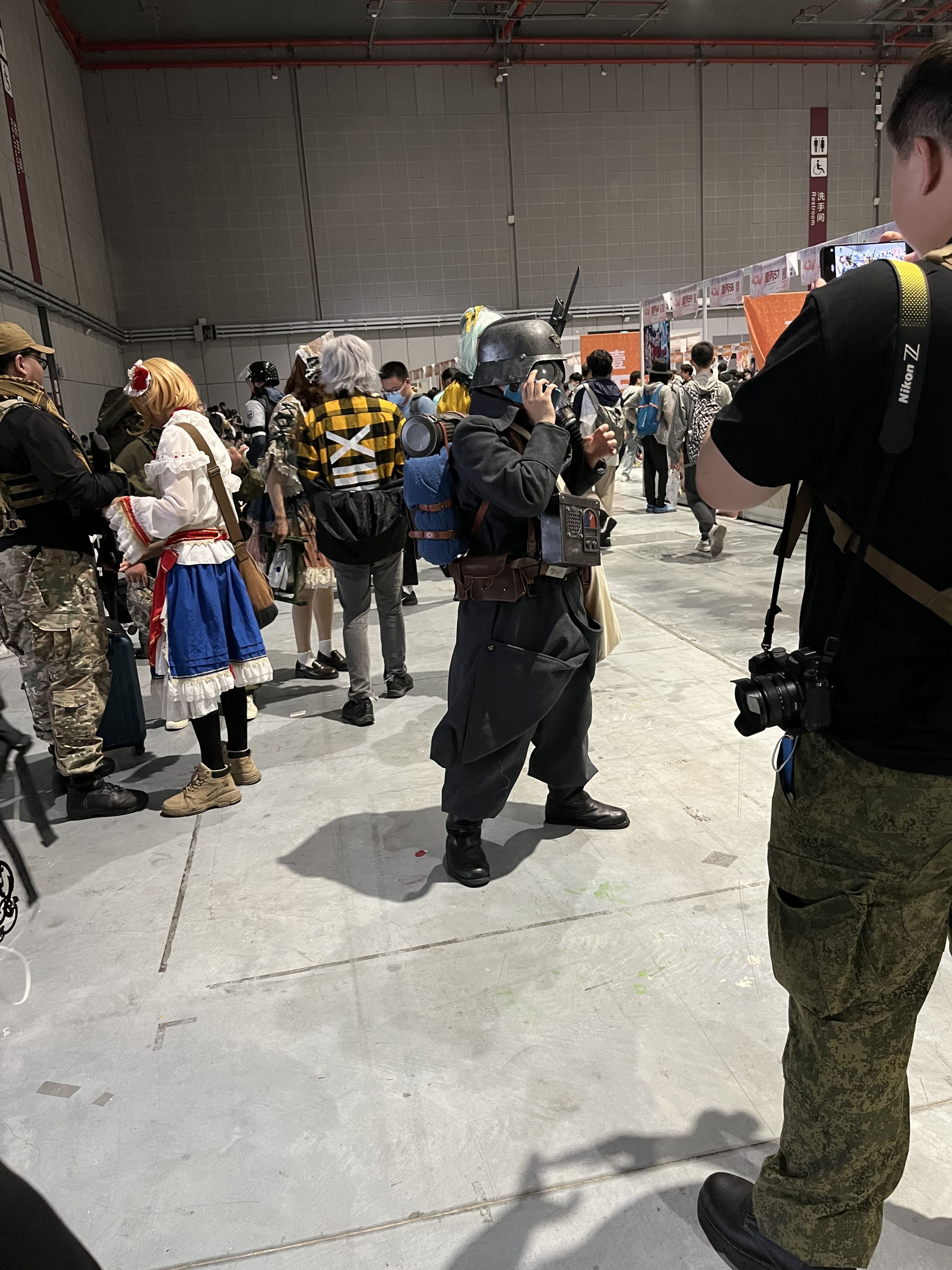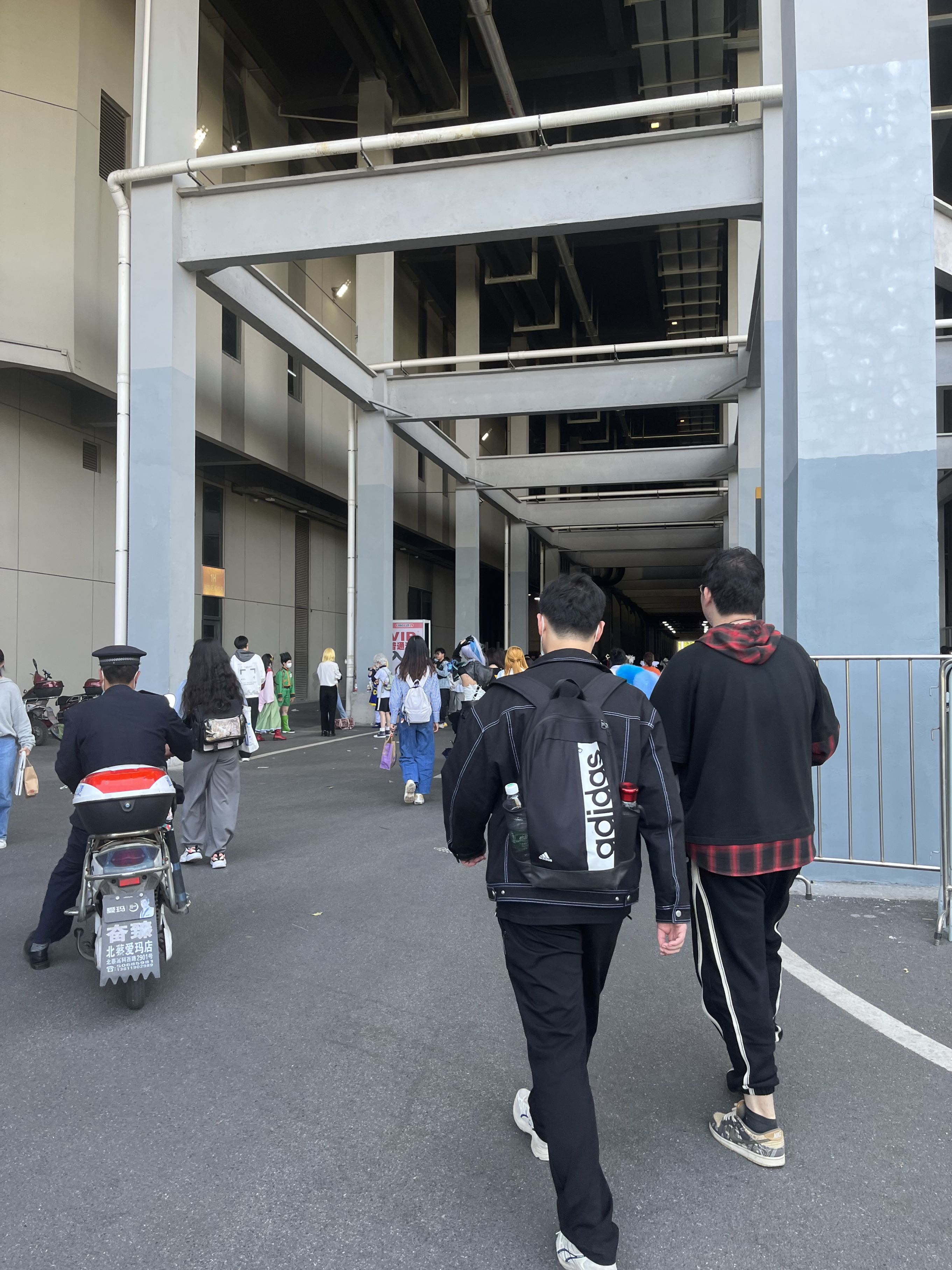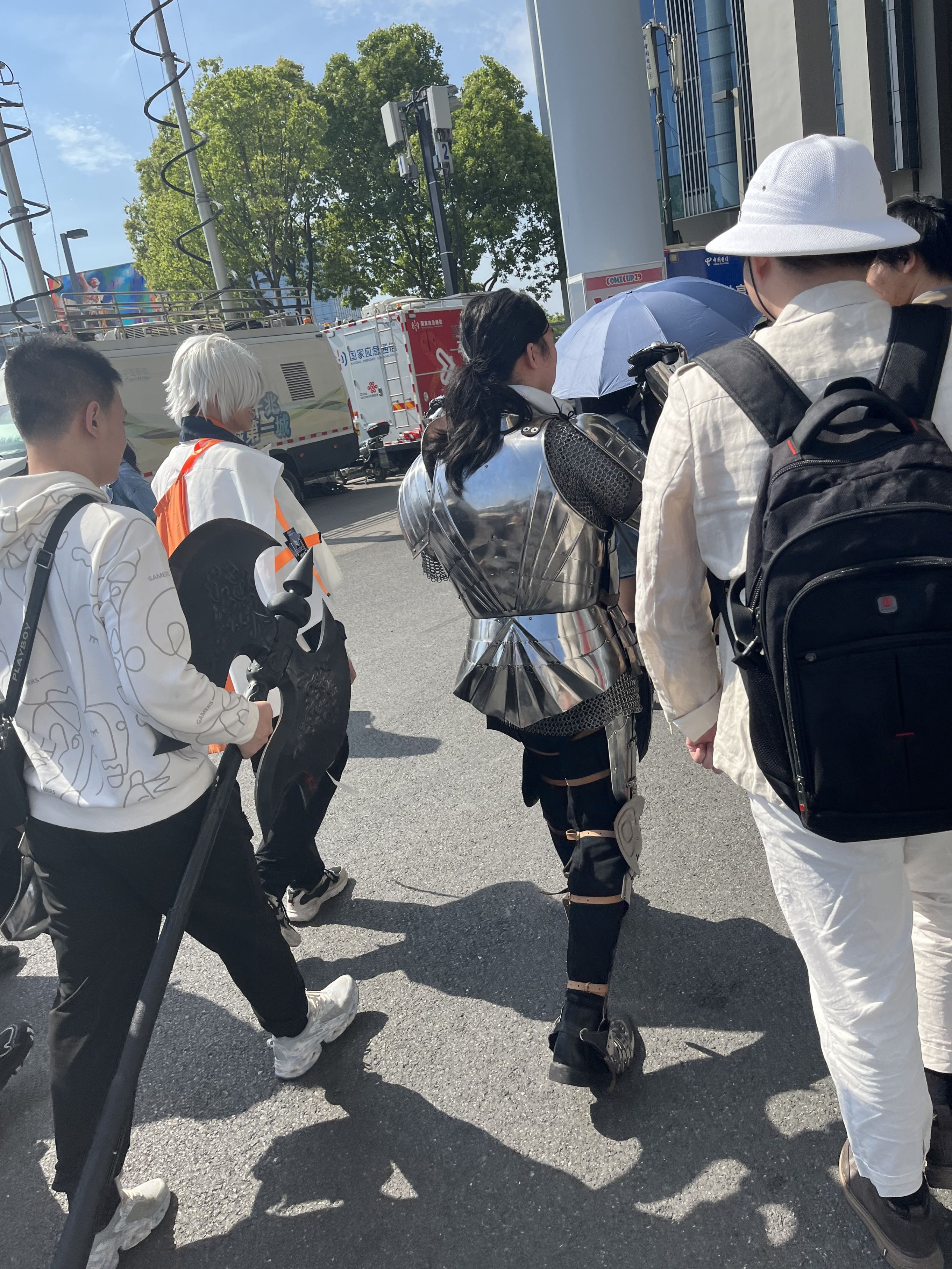展館外滿是奇裝異服的coser,其中又以二遊居多。我們遇見了一位身着甲冑的老哥並與他合了影。在熟悉了國家會展中心附近的交通情況後,我們發現附近沒有地鐵能直通閔行區的漣泉大江戶(少女前線溫泉活動門店),打網約車也很難,只好叫了打表的出租車。