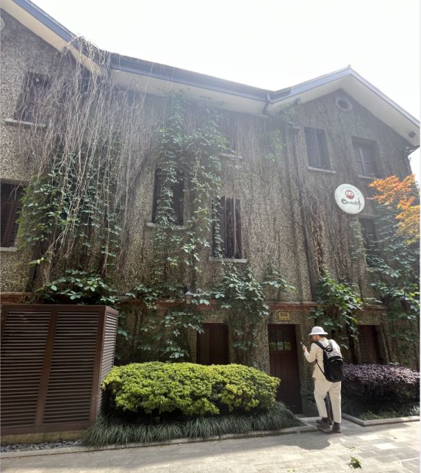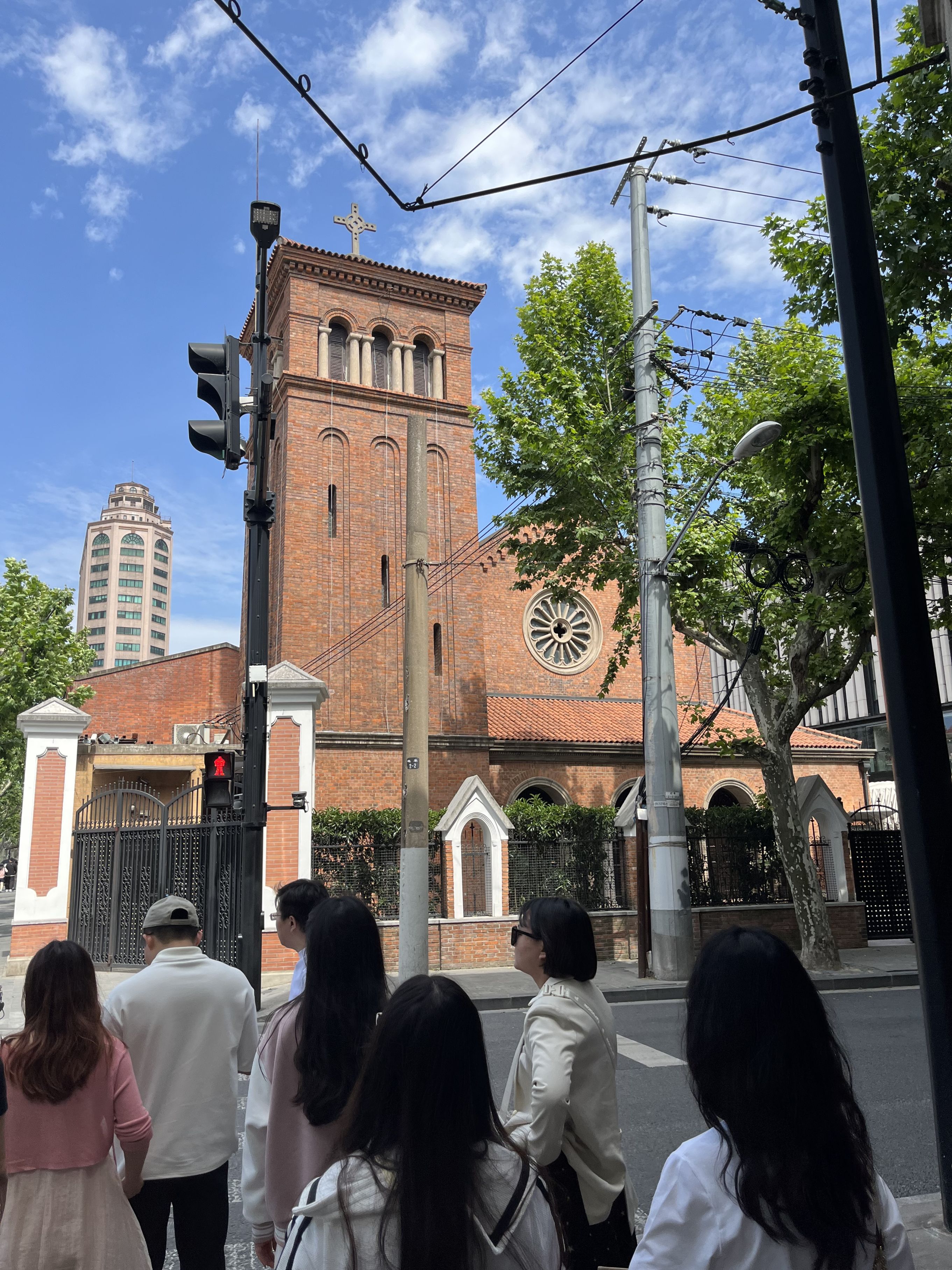 隨後我們騎車在黃浦區的思南公館附近展開了自由探索。這天風很大,很多法國梧桐的飛絮被吹到了我們眼睛裏,以至於我們不得不停下來多次揉眼睛,要是戴上帽子會好很多。我們本來是衝着這裏的書展來的,到了才發現書展在上個月月底就結束了,不過附近的景點仍然值得一看。
