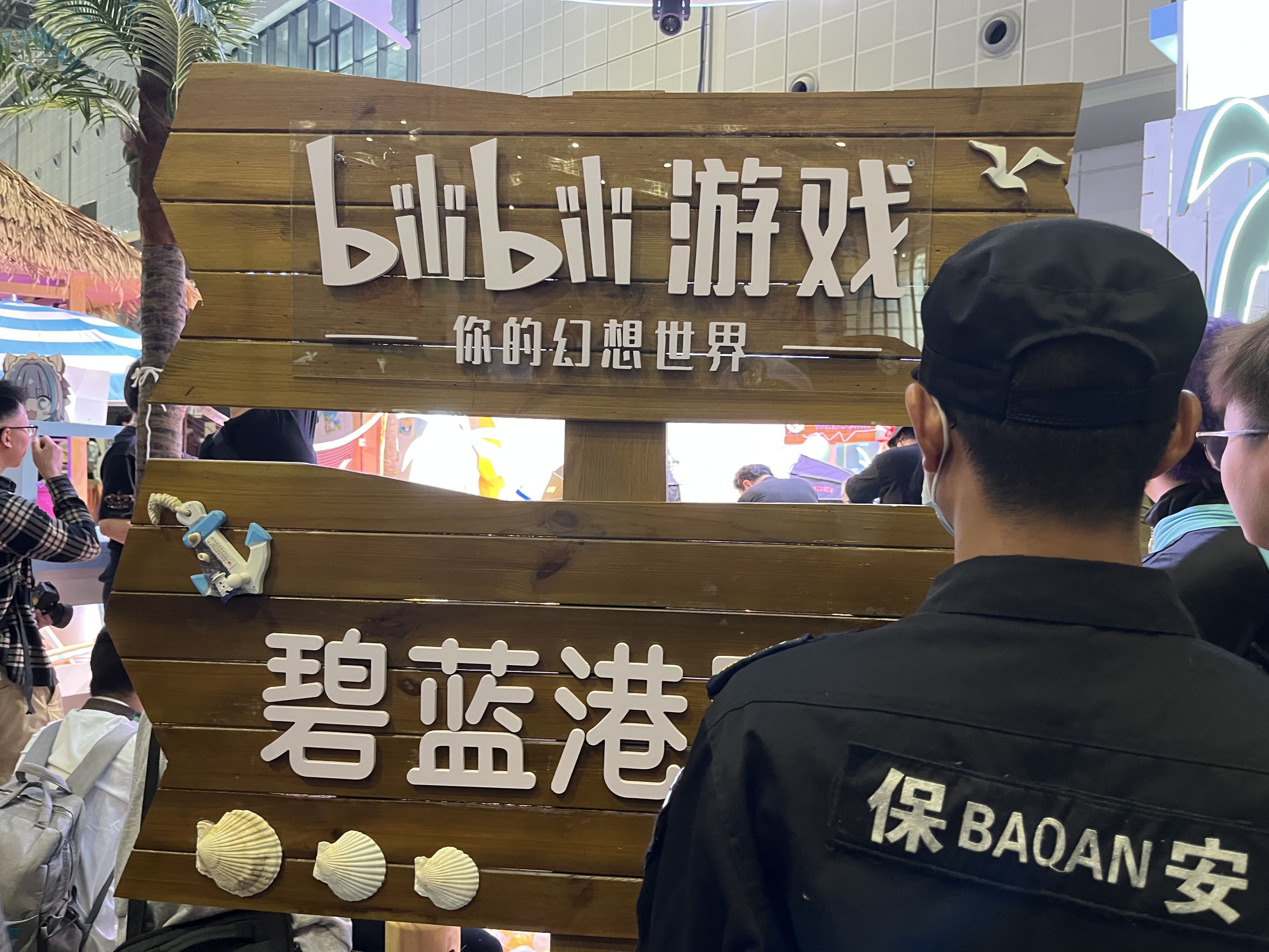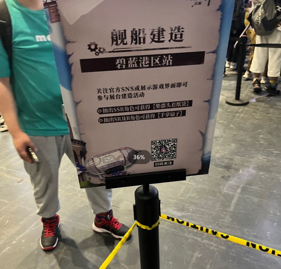 今天上午排隊的人倒是不多,檢票也很嚴格,進去需要刷身份證加掃臉。“四葉草”面積很大,我在盥洗室裏換上了制服,戴上了帽子,便按照引導牌的指引前往企業館,去參加碧藍航線活動。除了艦娘coser(其中又以柴郡居多)外,和我一樣打扮成指揮官的也有七八人,其中還有b站的整活up主。我們幾個屑指見面後會心一笑,其中還有同仁吐槽我不該在制服上戴資歷章,這樣不專業。