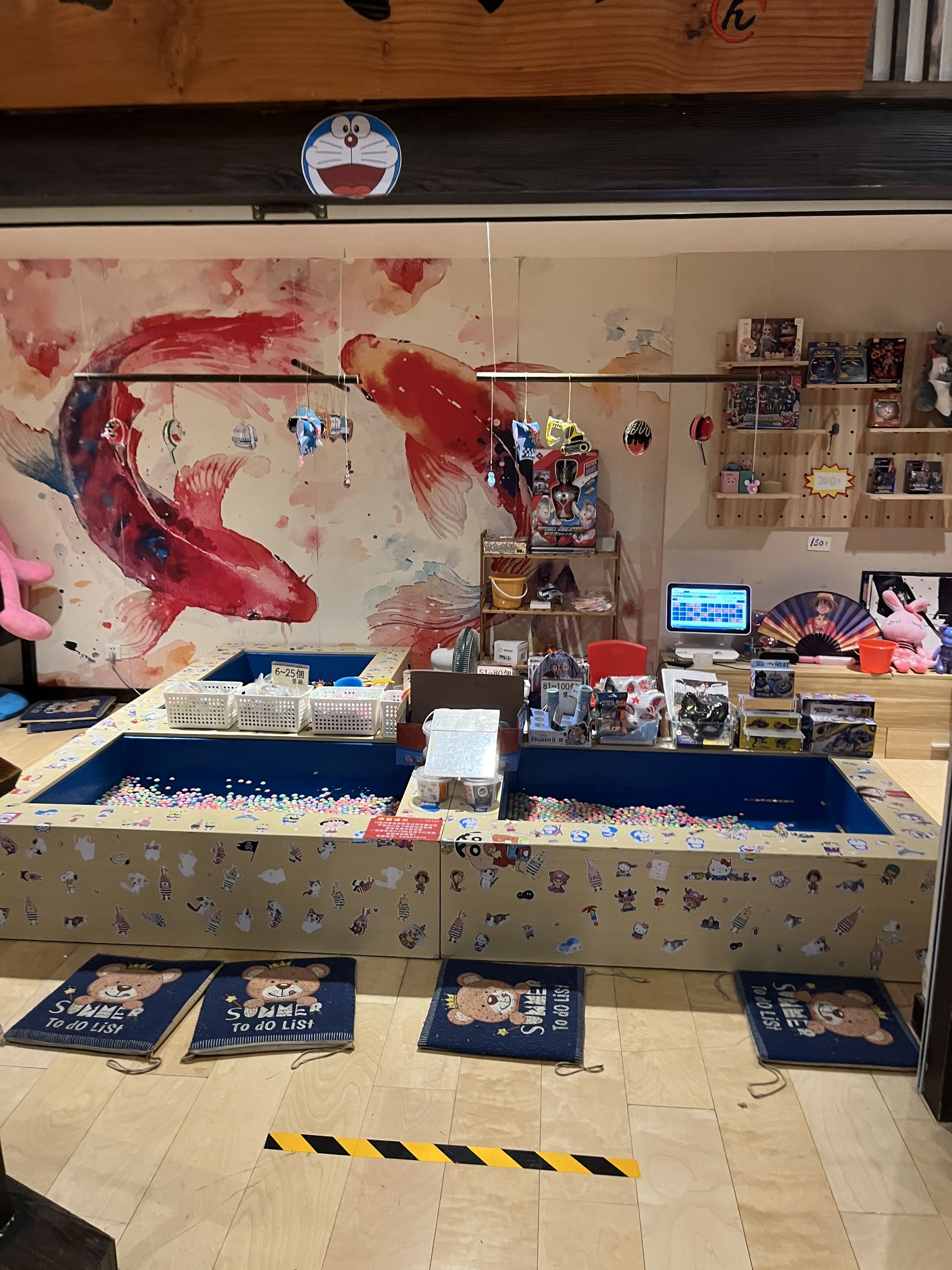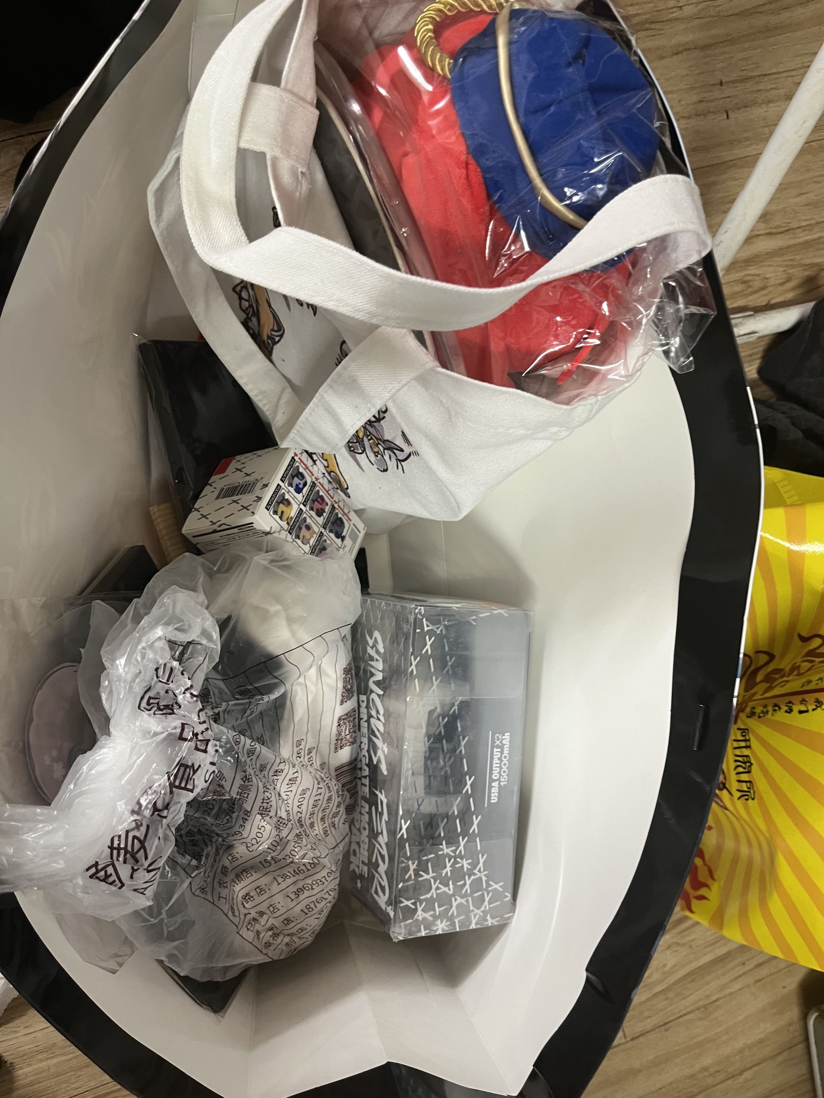 臨走前我還清點了一下本次活動的戰利品:進門周邊五件套(浴衣,帆布袋那些)、光柵卡一張、亞力克立牌一個、玩偶一個、徽章一個、鐵血工造兵蟻收集器一個、三條金魚(我一共撈到四條,最多能帶走三條)、鐵血造型大容量充電寶一個(中的二等獎)、立體鼠標墊一個(買的)、紀念套票兩份(買的)等,其中光是中的充電寶就足以彌補門票本錢了