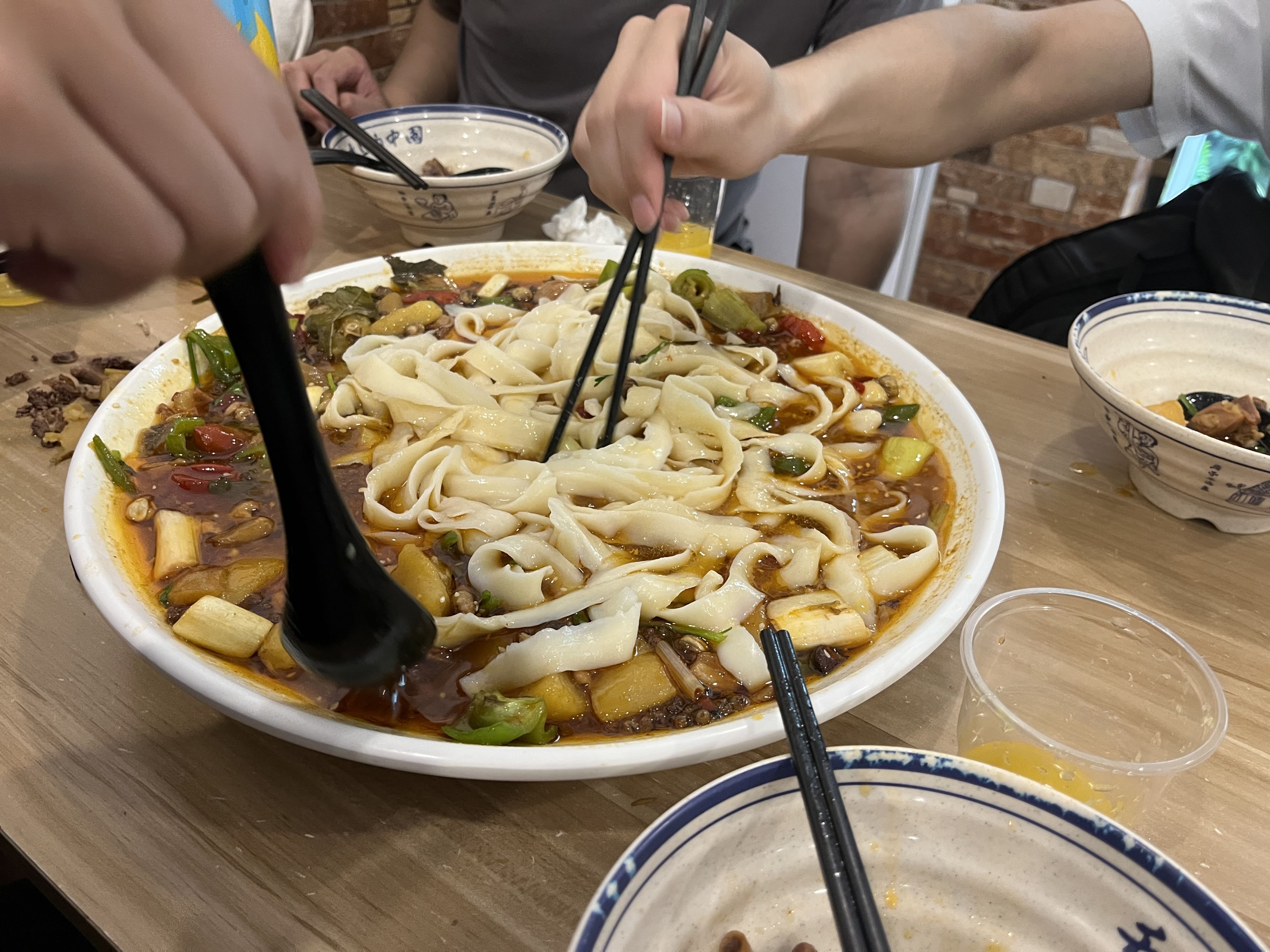 另外,室友們也爲我接風洗塵,請我喫了大盤雞,並哀求我不要走,留下來幫他們改改論文。當然,室友的請求並不能動搖我鋼鐵般的意志,我之前和居住在蘇州與常州的兩位本科室友也有約定,有一些事務有待處理,因此蘇南之旅已成定局。