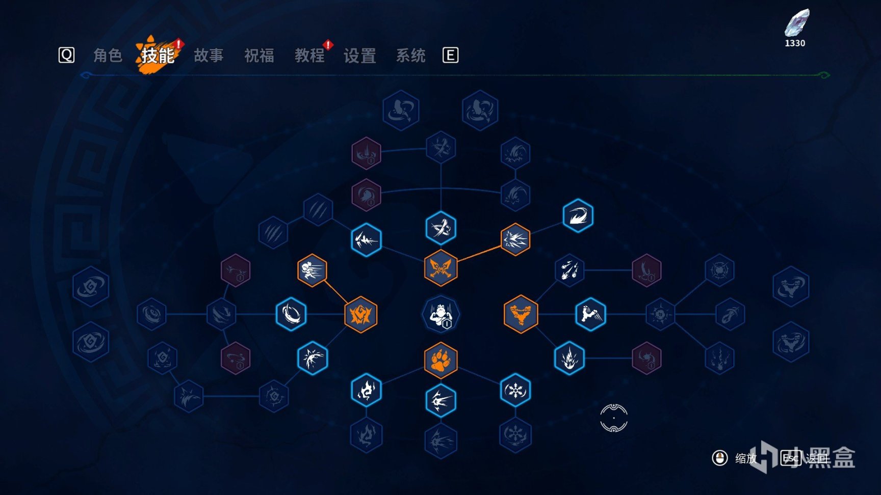 比如技能的加點消耗的資源就主要來自於主線任務,玩家可以在獲得技能加點所需的寶石資源後在方尖塔進行加點操作,技能樹的加點自由度很高,這意味着玩家在前中期可以根據自己更擅長的戰鬥方式來加點,這種自由度頗高的成長感也是本作的一個亮點。武器裝備的強化也有着類似的成長邏輯,選擇哪個部位的裝備優先強化,是玩家可以根據個人意向自由安排的。