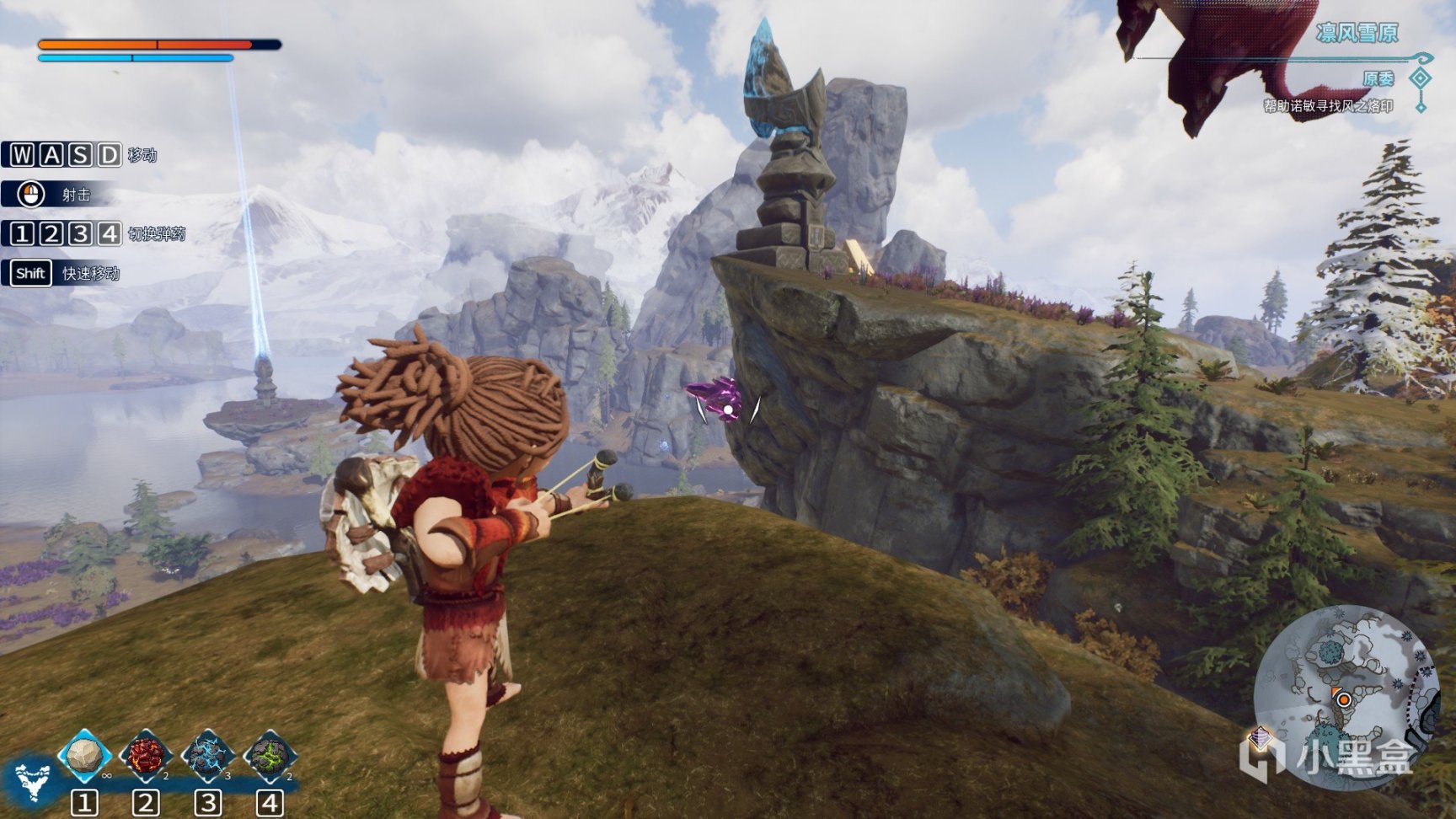 主角在本作的戰鬥方式主要有兩種:彈弓遠射和劍盾近戰。前者的操作技巧比較少,也更容易上手,瞄準之後可以選擇特殊彈丸打出更強的遠程攻擊,但特殊彈丸需要玩家收集對應的材料先行做好才能以備後用。遠射除了能在戰鬥中放敵人的風箏,還有一個重要的作用就是收集資源。本作中有很多資源分佈在主角無法到達的高處或者遠處,此時我們可以使用彈弓進行射擊,把資源“打破”之後就可以直接將其收入囊中,這種特殊的收集方式會給我們帶來很多的便利,可以好好利用。