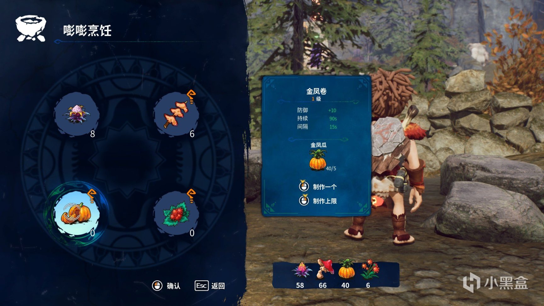 我們收集的資源除了用於角色成長之外,還有一部分是食材,可以用於烹飪。本作的烹飪系統雖然比較簡單,但卻是主角重要的補給來源,我們收集到的食材在烹飪點進行加工之後,就能變成各種能幫助我們戰鬥的消耗性道具,比如喫了之後加血或者加攻擊,相當於一個讓玩家自制補給品的系統。