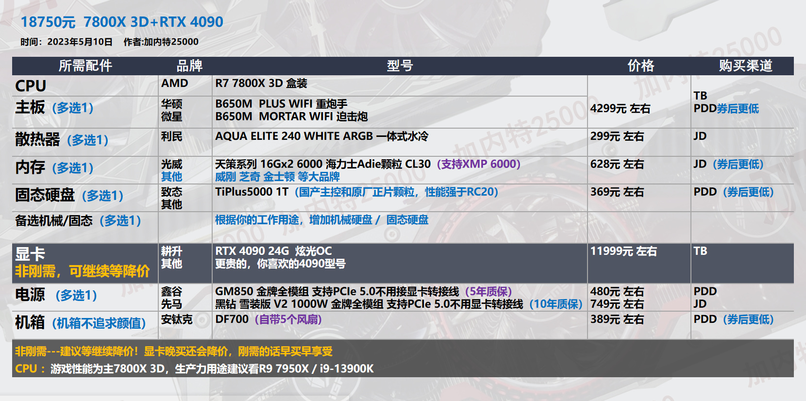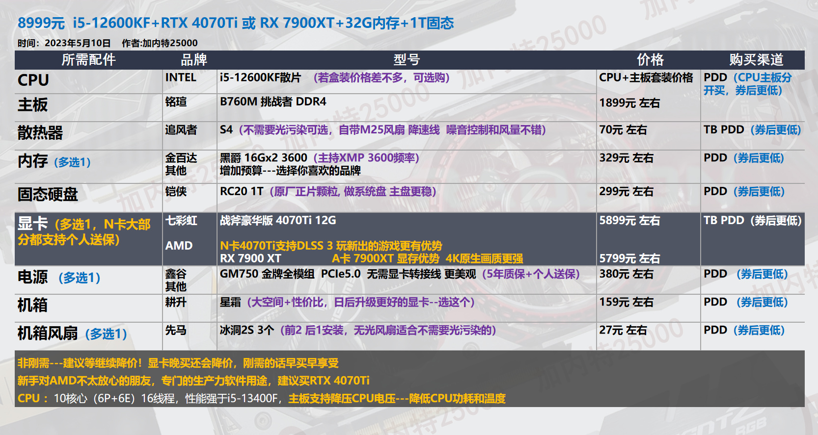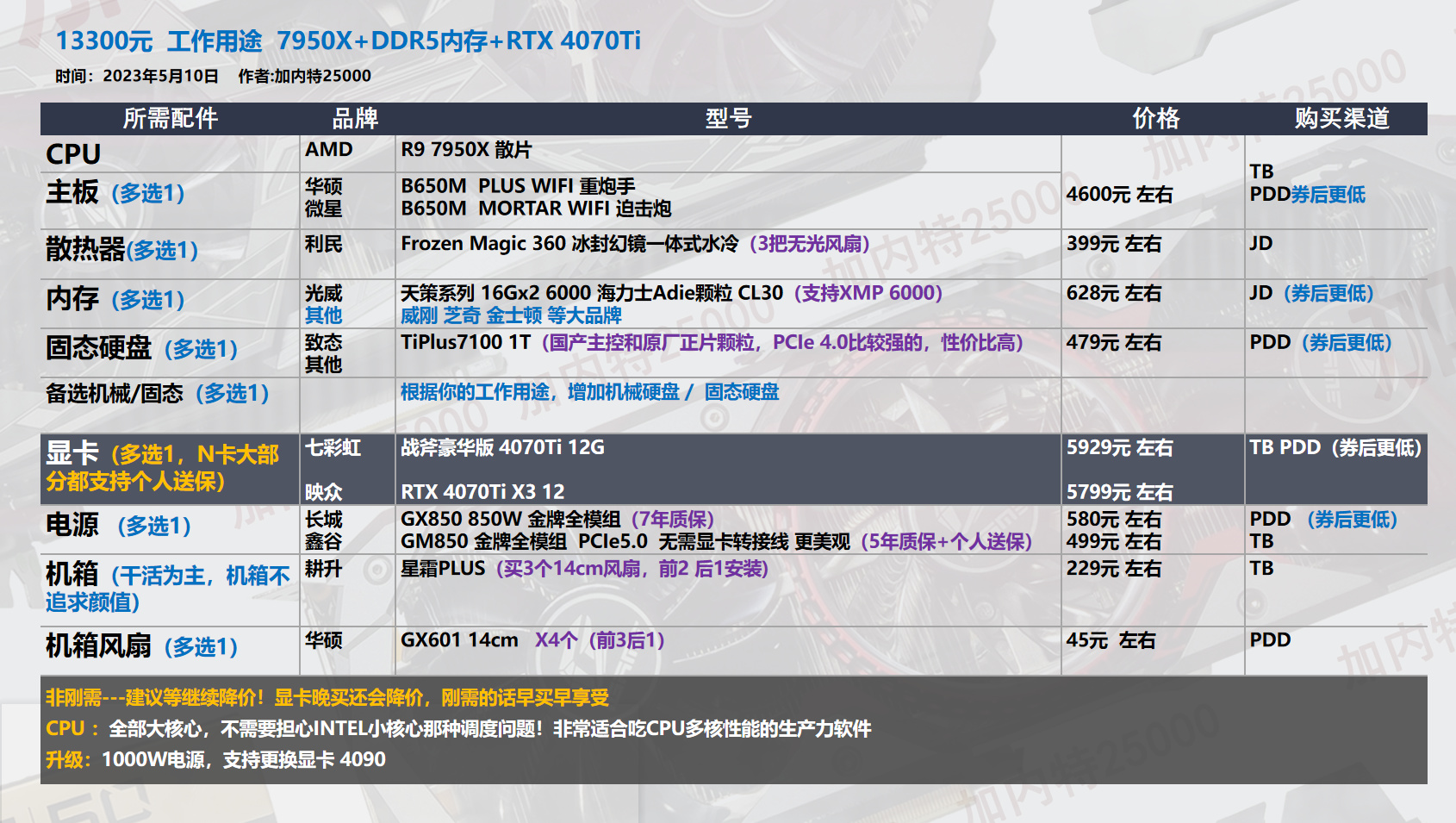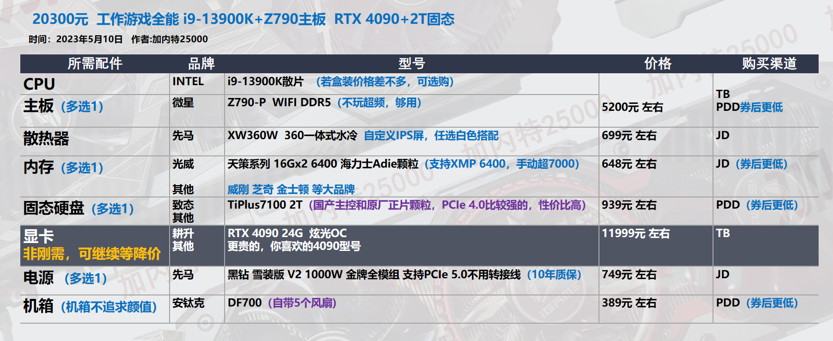 我的推荐以显卡和需求为导向,无论你是游戏,还是生产力用途,都可以在我的基础上,进行调整,选择喜欢的适合你的品牌配件。