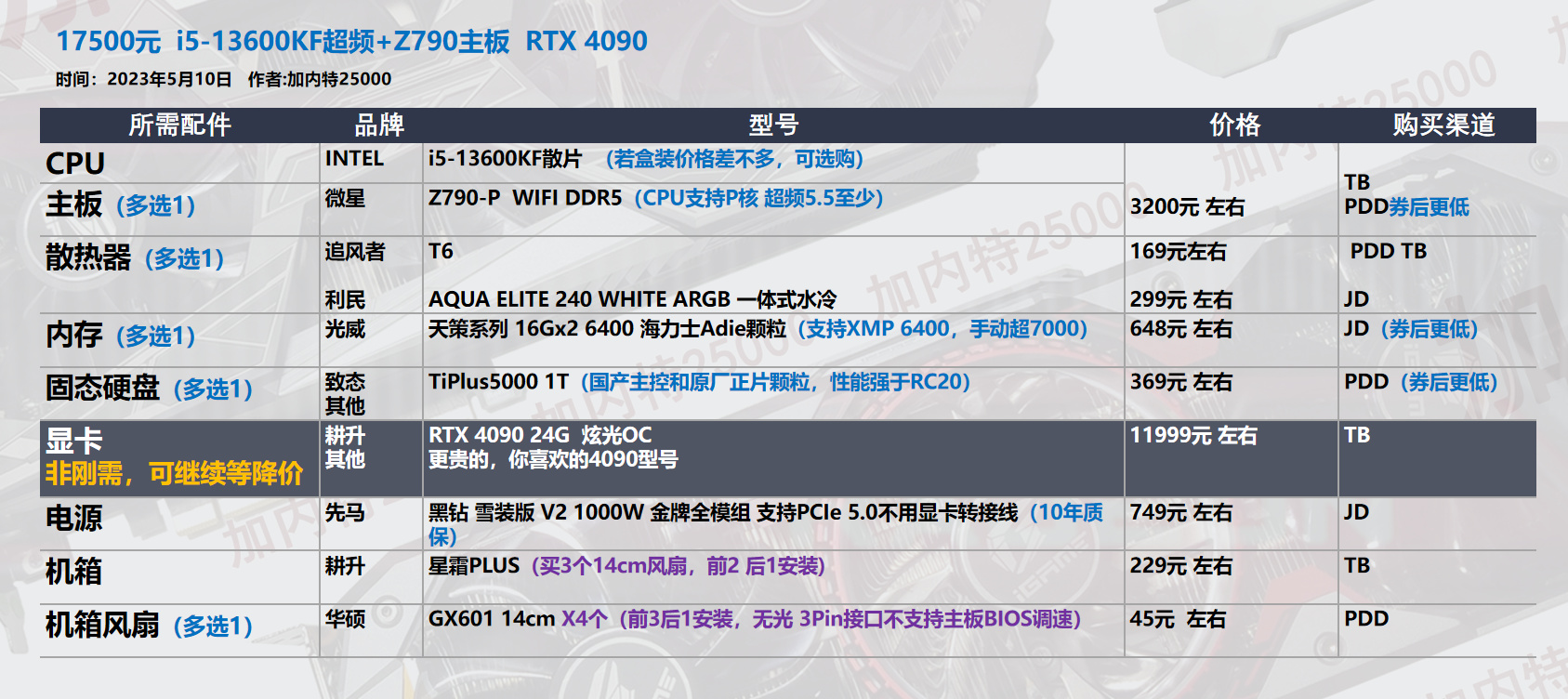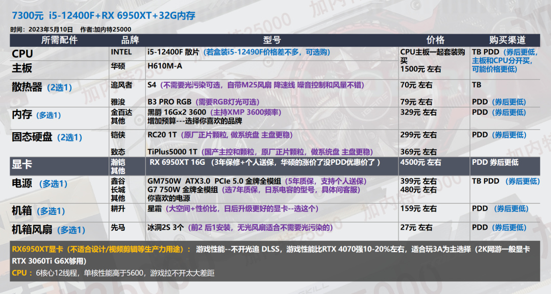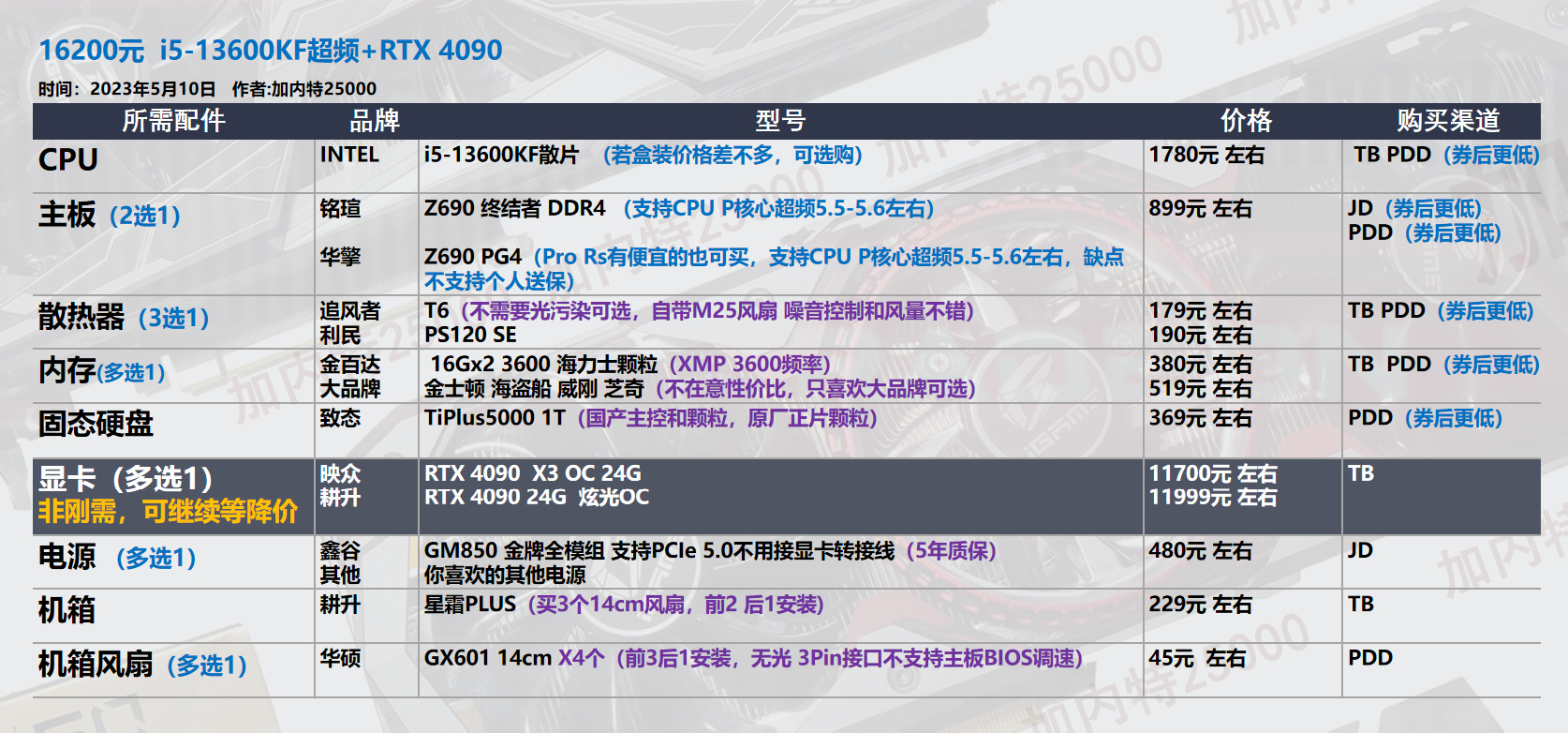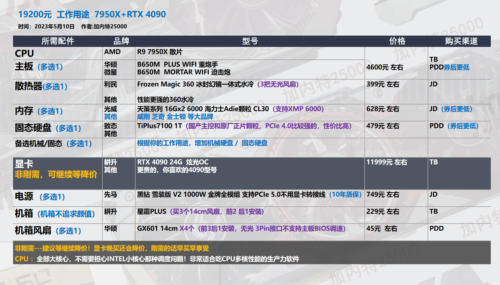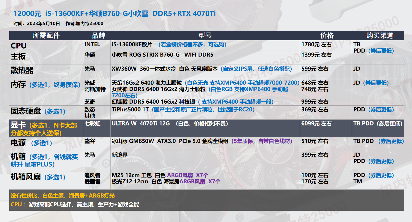 我的推荐以显卡和需求为导向,无论你是游戏,还是生产力用途,都可以在我的基础上,进行调整,选择喜欢的适合你的品牌配件。