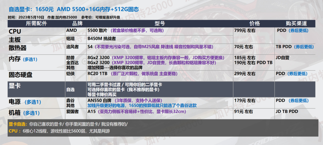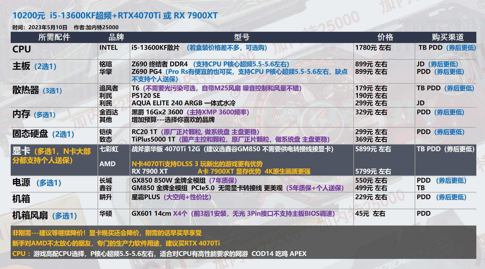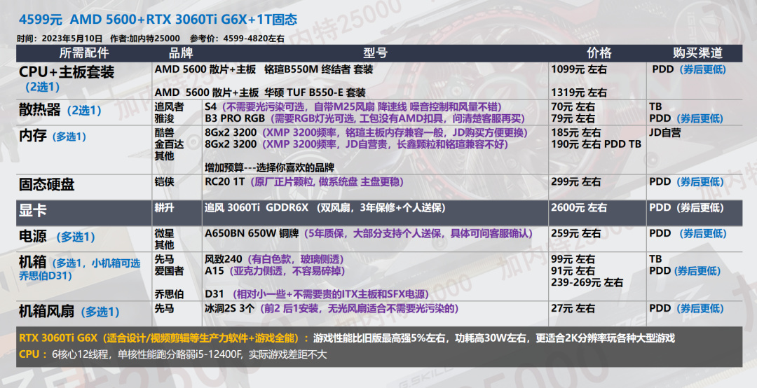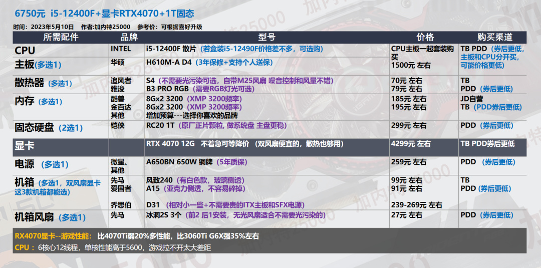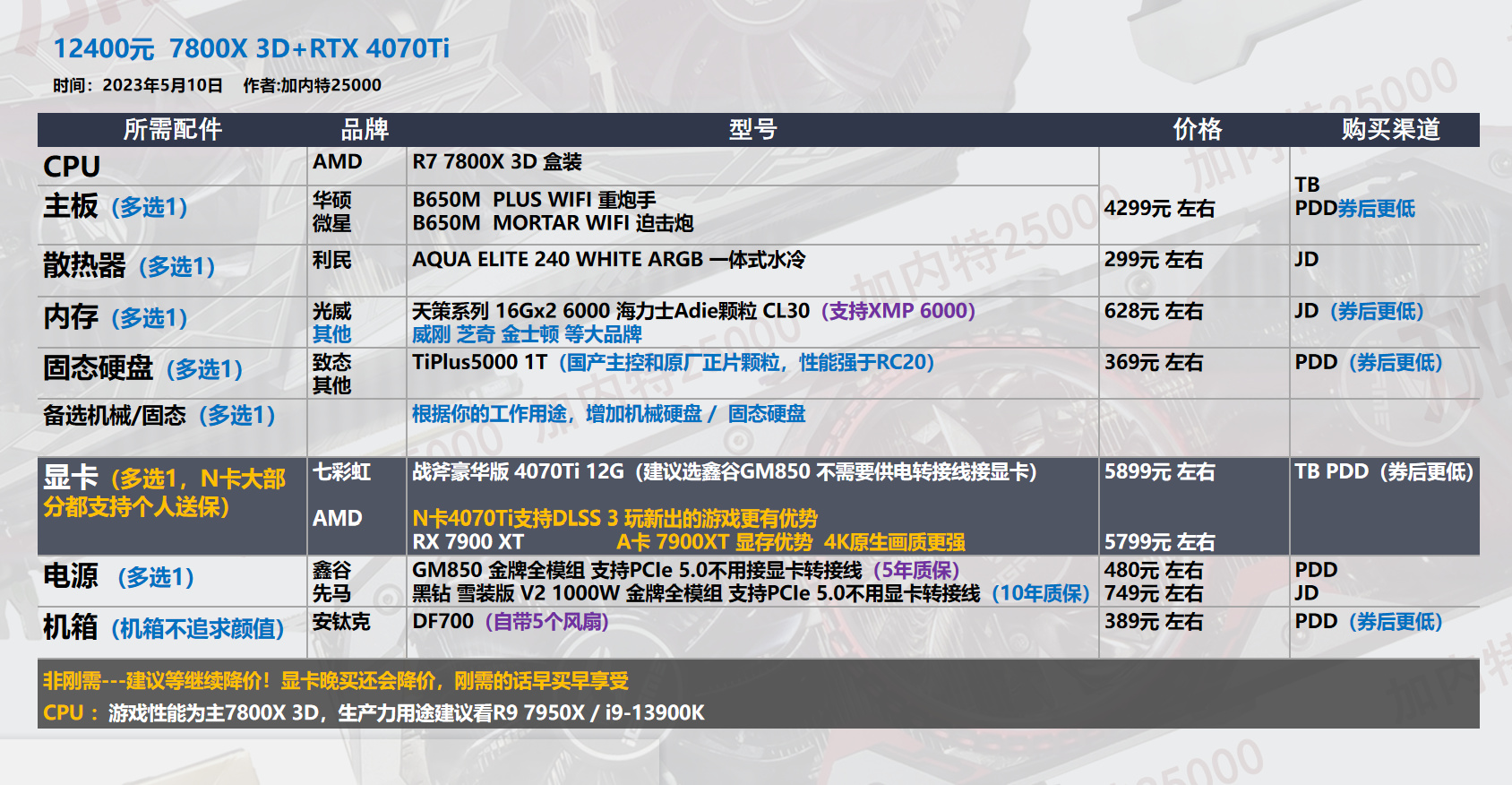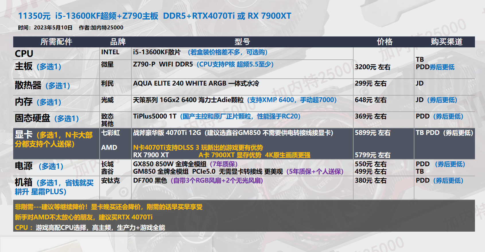 我的推荐以显卡和需求为导向,无论你是游戏,还是生产力用途,都可以在我的基础上,进行调整,选择喜欢的适合你的品牌配件。