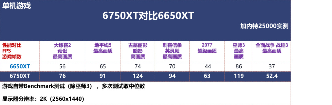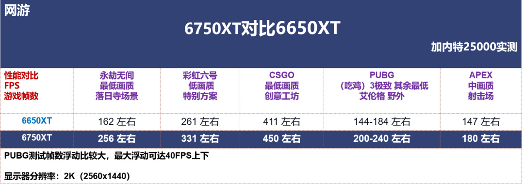 2K分辨率,6750XT游戏帧数,比6650XT强20-35%左右,比3060Ti G6X 游戏帧数更高。