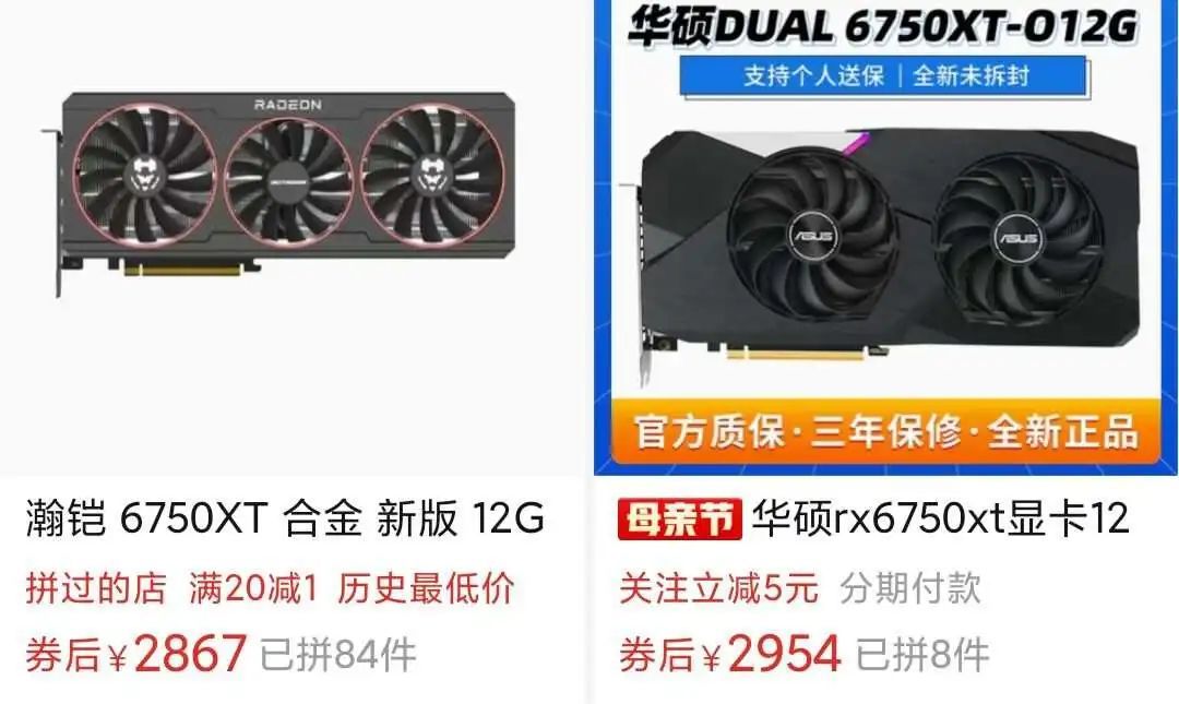 目前最低价PDD券后2800左右,只比3060Ti G6X贵了200多,只玩游戏我其实更推荐6750XT,瀚铠和华硕的都是3年保修,支持个人送保。