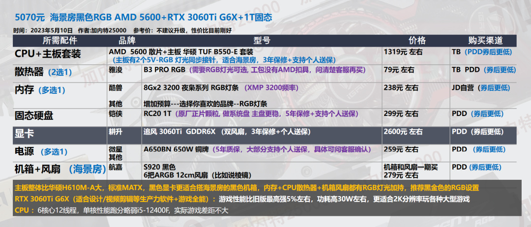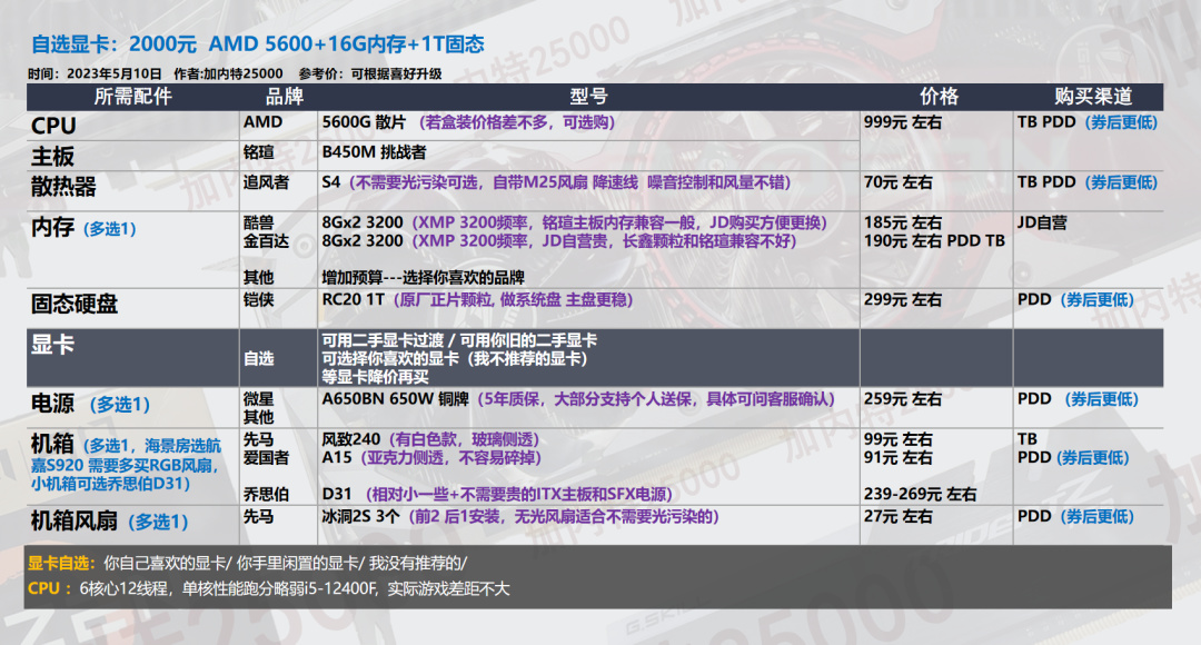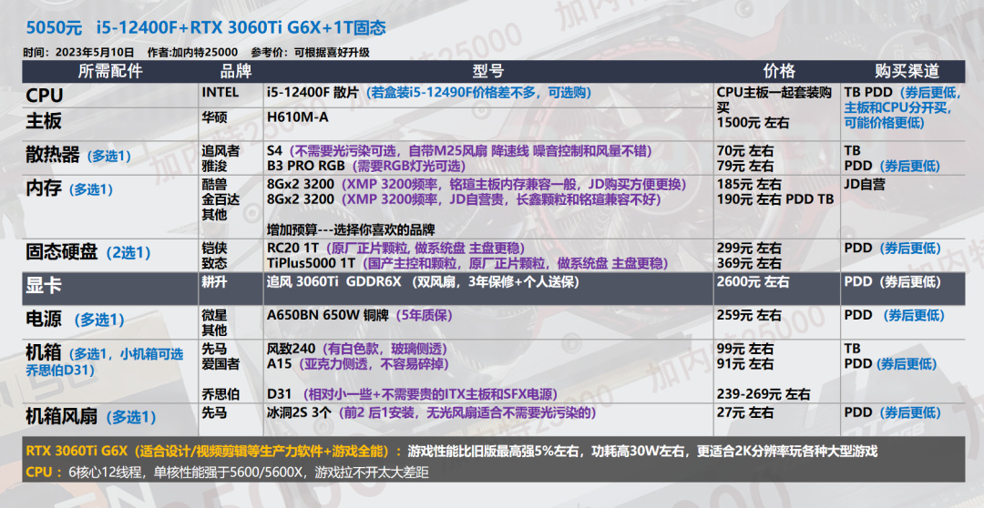 想要618装机的朋友,这期5月的装机配置推荐,各位可以提前参考,慢慢研究,选择适合自己的配置。
