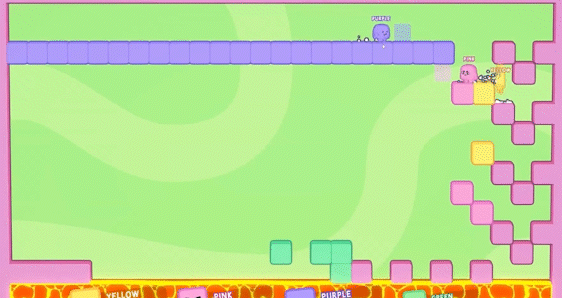 游戏有着简单的操作,但通往胜利的道路却并不轻松!利用方块阻挡对手,破坏他人的方块打乱对手的节奏,将对手推到岩浆里等等,你需要想尽办法先于其他玩家达成目标,或者利用各种手段成为存活到最后,才能成为最终的胜利者!