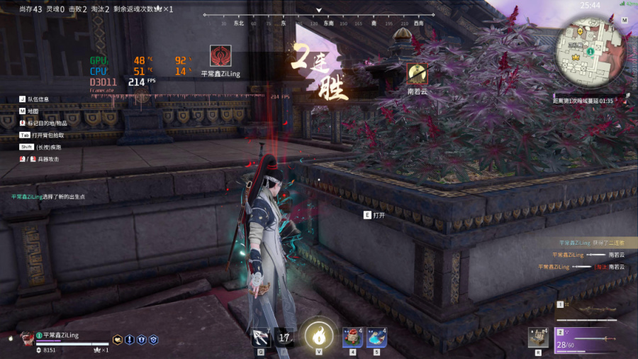 《永劫無間》,畫質極高,DLSS超級性能,4K分辨率下,遊戲實際幀率能保持在210FPS以上;