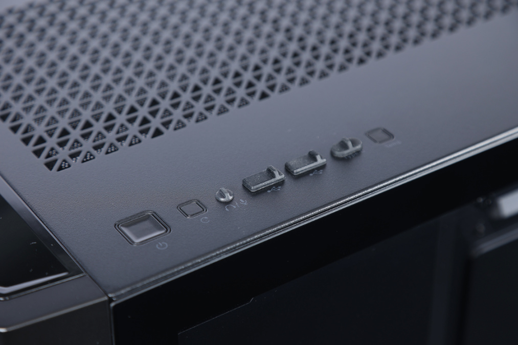 機箱I/O面板位於頂蓋一側,含:開關/重啓鍵、USB 3.0*2、Type-C 10Gbps*1、Temp溫度顯示切換按鍵*1、音頻口*1,防塵塞的小細節,也非常貼心。