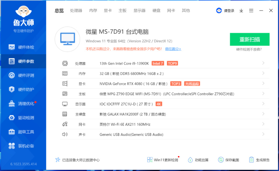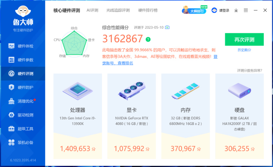 魯大師整機測試得分316W分,我說這是高端主機,沒啥毛病吧?