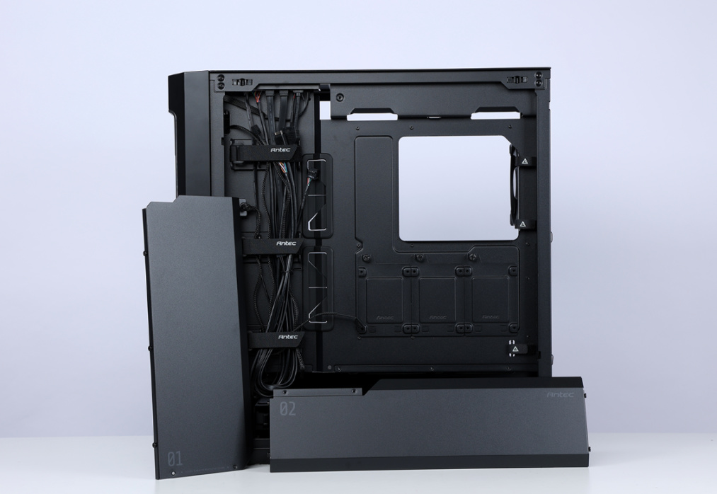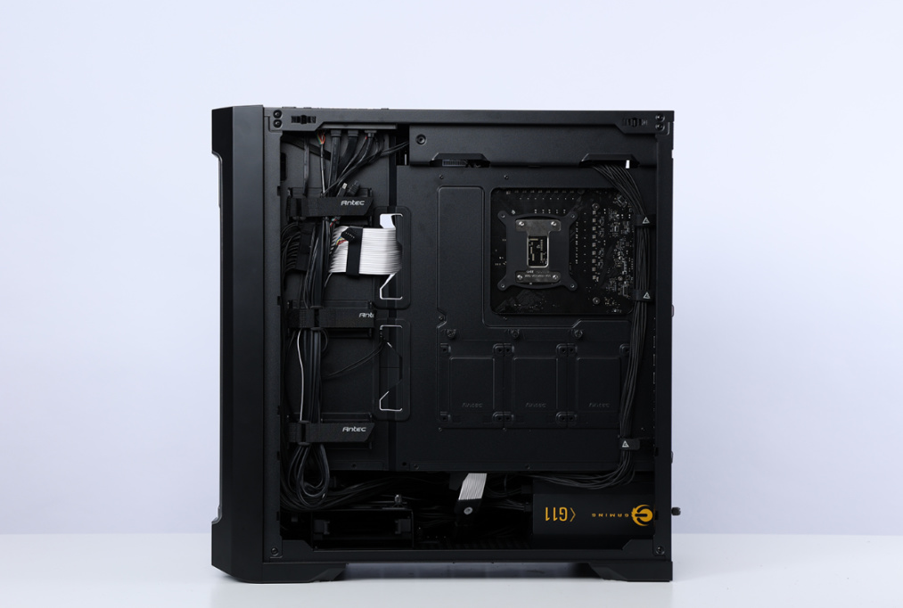 背部的左側與底部有金屬蓋板可用於藏線,右側的CPU走線槽處還預裝了3個魔術貼用於理線。