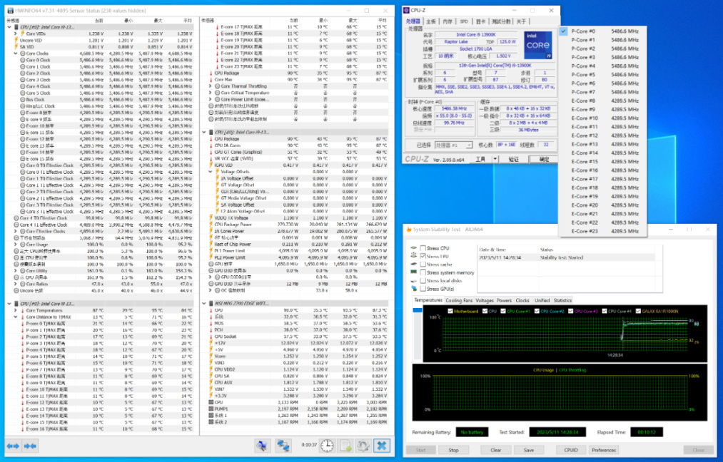 室溫26°,機箱內環境,單烤FPU測試,烤機10Min,CPU溫爲90°左右,CPU功耗280W左右;