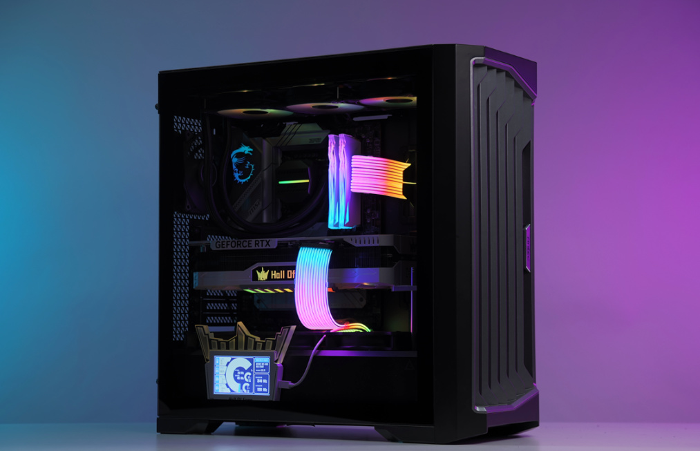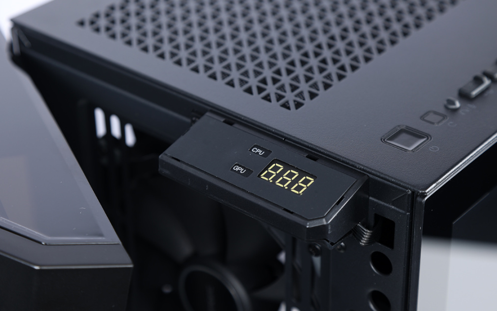 除了顯卡附贈的小屏幕,機箱也將細節拉滿:可視化溫控顯示YYDS(CPU+GPU溫度)