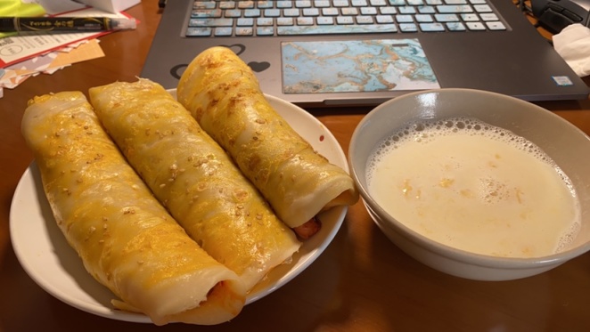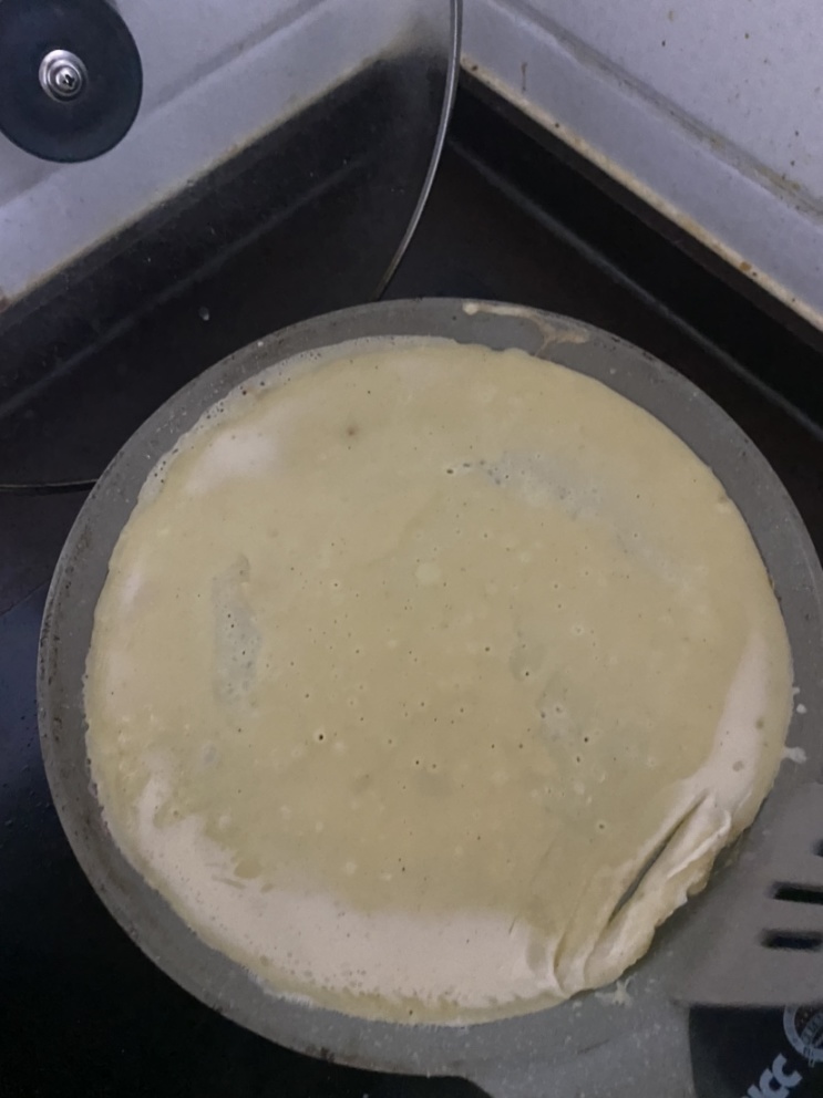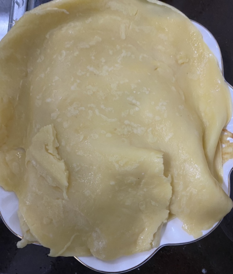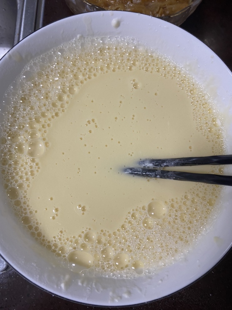 3.然后起锅抹一层油(为了防止糊锅)倒入面糊
