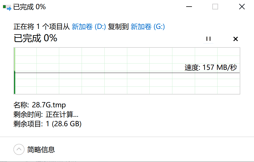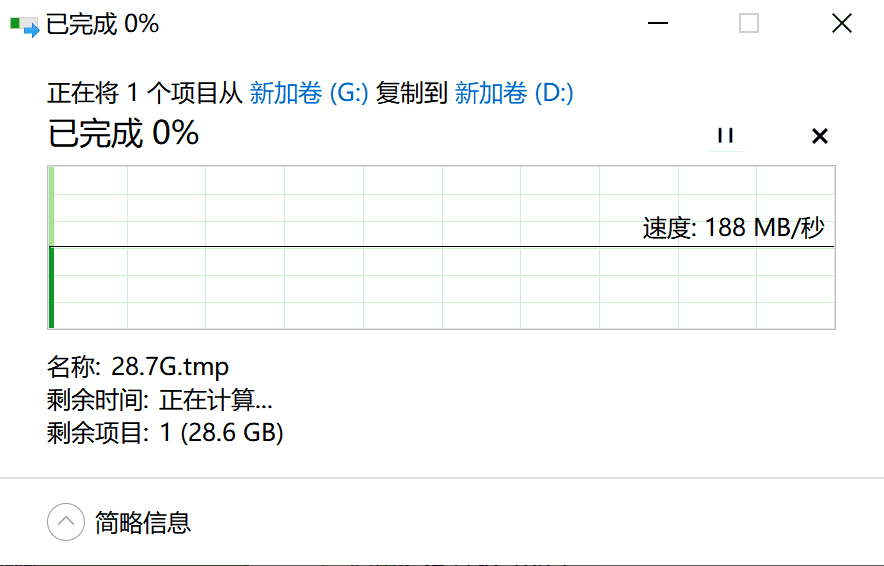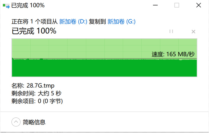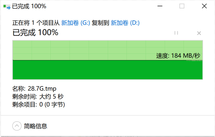 ▲再将这个28.7G的文件复制到电脑上,读取速度稳定在190MB/s,更加稳定,让人赏心悦目。