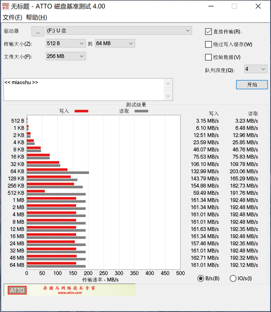 ▲用ATTO测试,速度曲线非常平稳,赞~