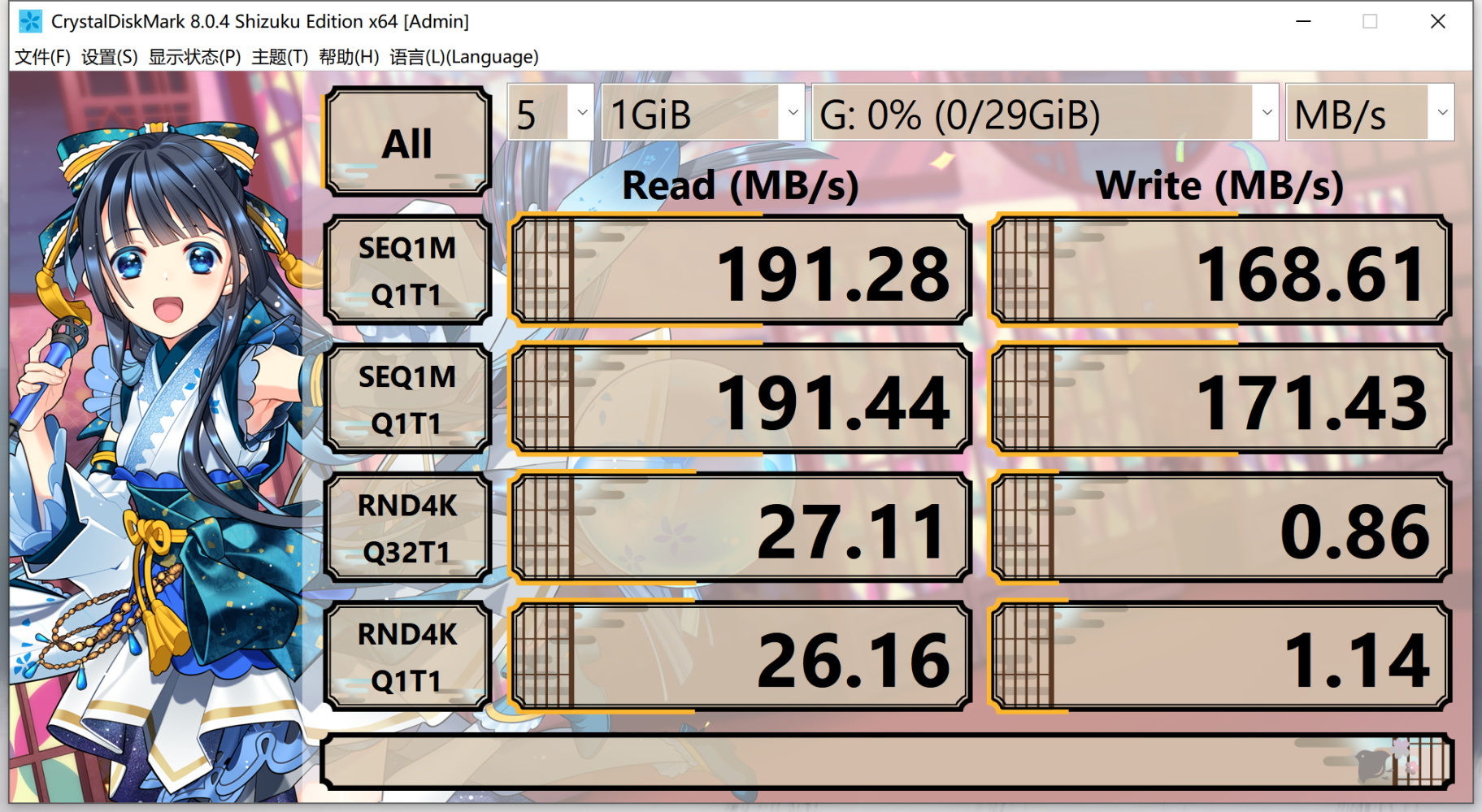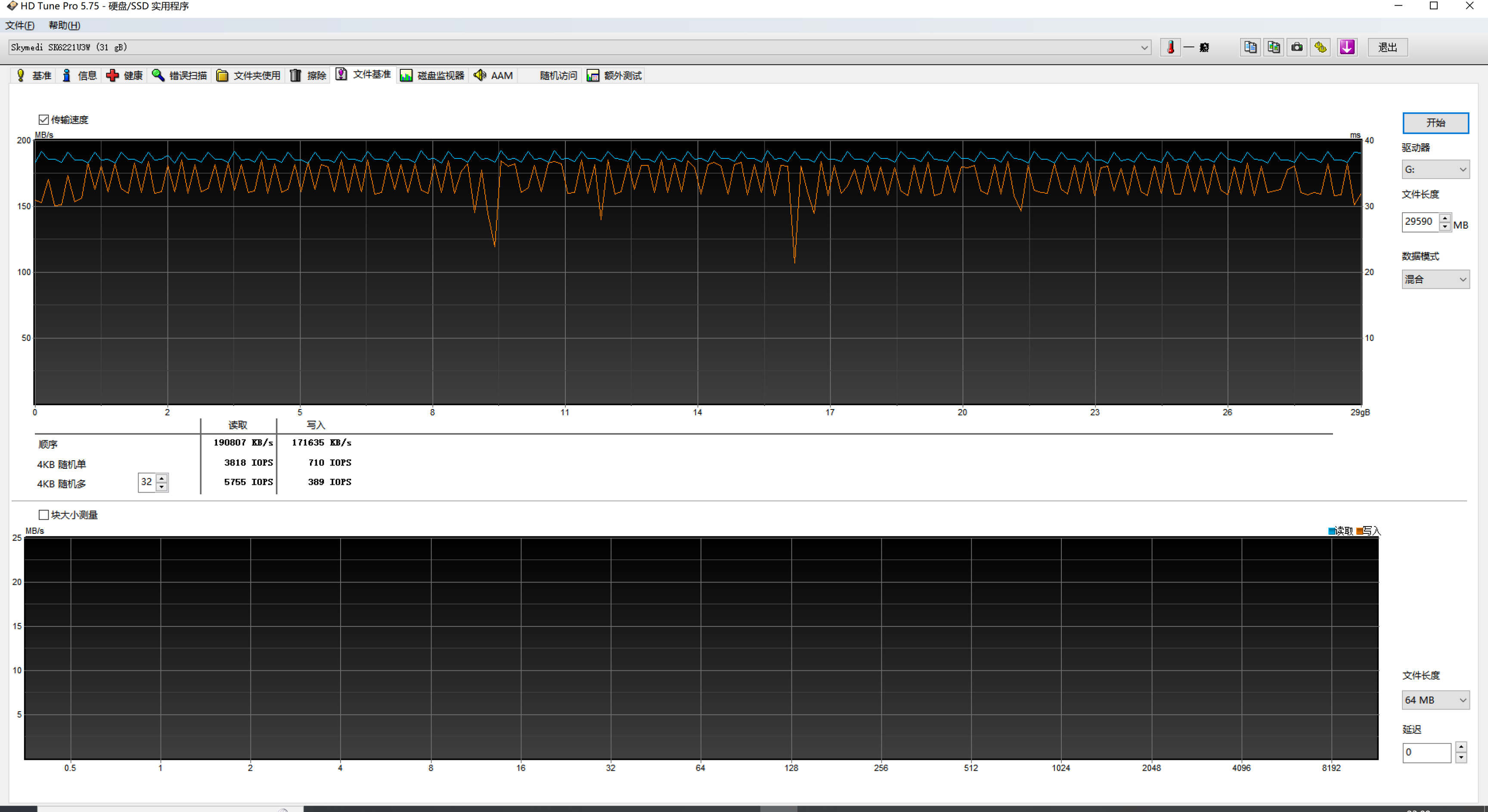 顺序写入速度191MB/s,顺序读取速度168.61MB/s,虽然没有固态主控U盘动辄几百MB/s那么疯狂,但是这速度搁在U盘上还是比较强的。