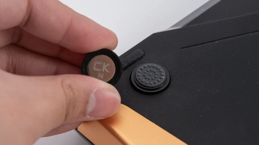 配合可以叠加高度的磁吸教程,键盘一共有4种输入高度,不过两个脚撑叠加起来一起用的话,最外面半圆形的脚撑轻轻一推就会掉下来。