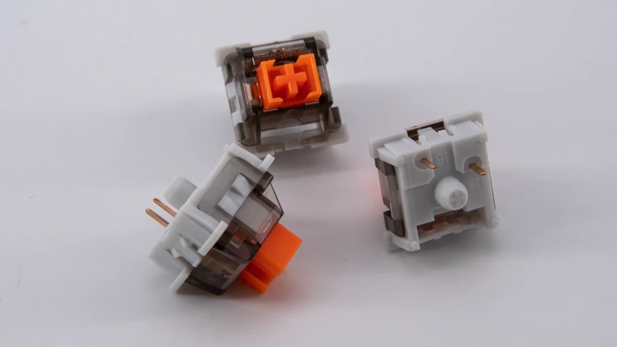 我手上的两把配色都是同一种CK定制的三叉戟轴,半透明的外壳加上橙色的轴心,看上去还挺漂亮,看外观猜测是还是CK常用的高特方案。