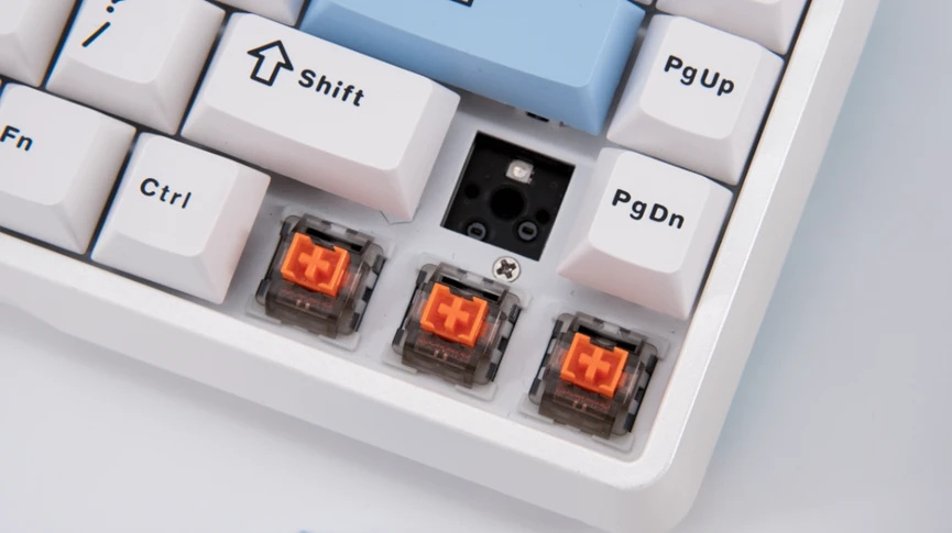 二来是我手上差不多都是浅色系的键帽,白玉这种浅色系的外壳在换键帽的时候会更好搭配。