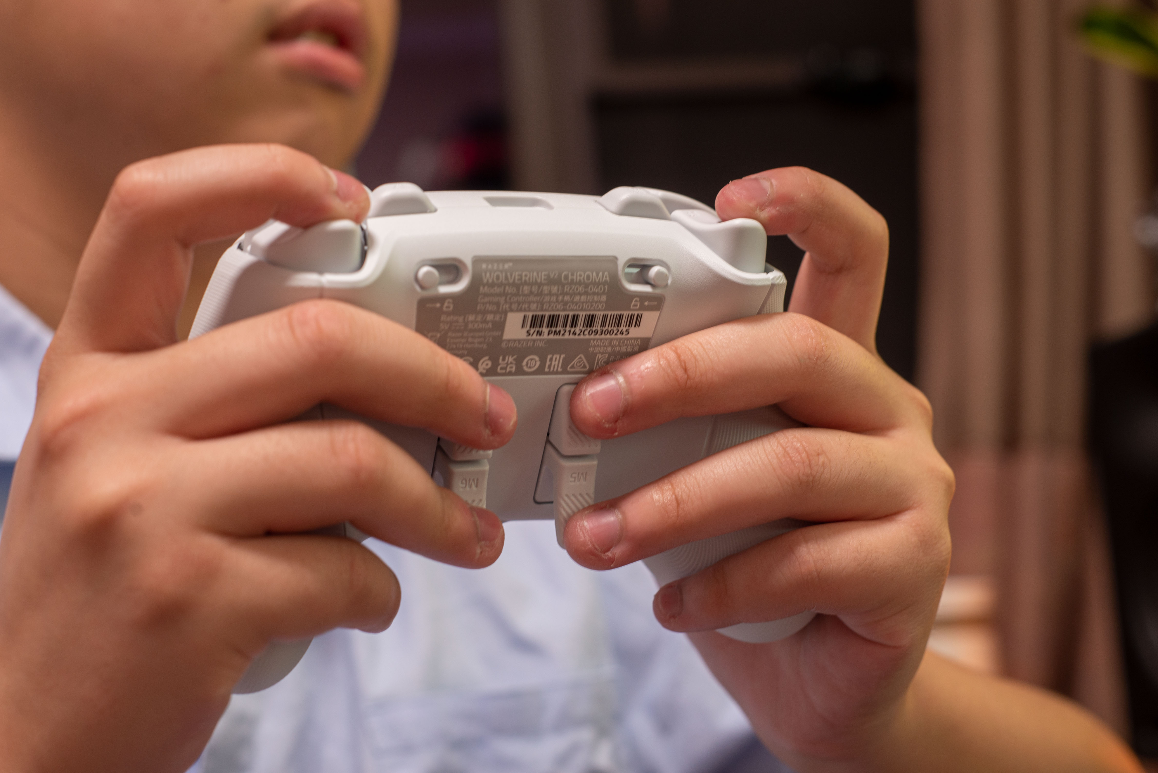 ▼背键数量虽然多但键位比较靠中间,如果用不上这个功能完全可以无视它,下图可以看到双手握住,手指根本接触不到背键,几乎不可能误触。
