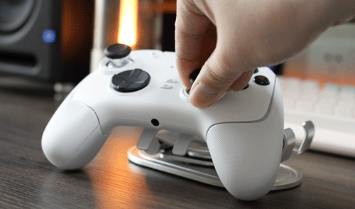 ▼摇杆键帽支持可更换设计,通过磁吸固定,用户选择不同高度的键帽,以此适应自己不同抓握摇杆的方式。此外,长时间使用键帽纹理也有可能被磨平,也可以通过更换键帽来解决。