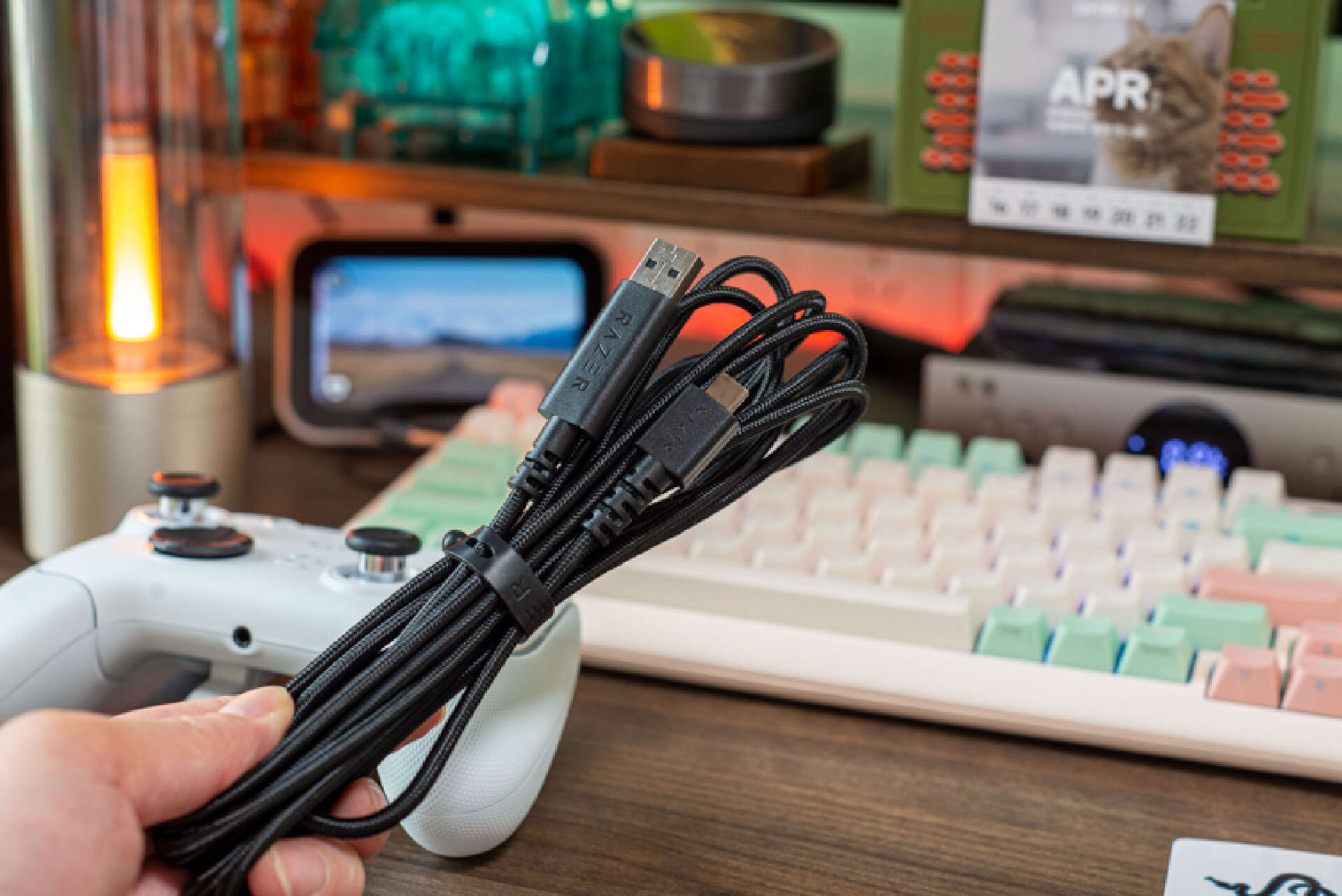 ▼手柄采用的键线分离设计,Type-C 支持正反插,线材两端都有蛇家的信仰 LOGO,不过如果能把线材换成超轻伞绳线那就更好了。