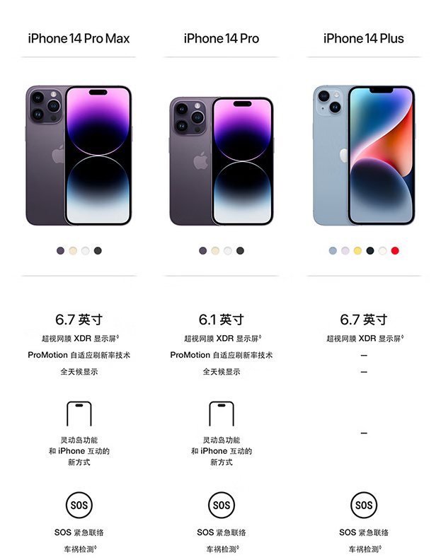 iPhone14 Pro 机型配备了全新的灵动岛药丸屏、支持 AOD 息屏显示,后置摄像头为 4800 万像素。