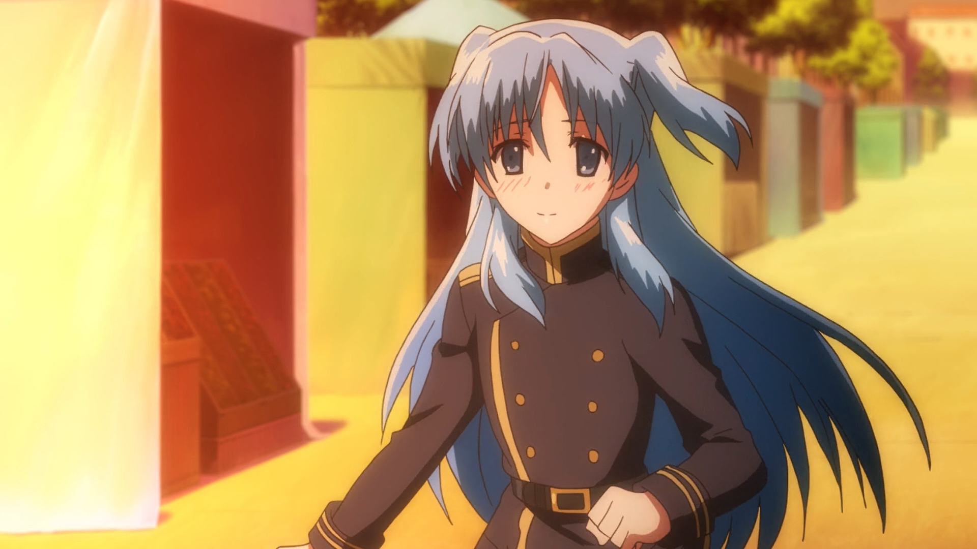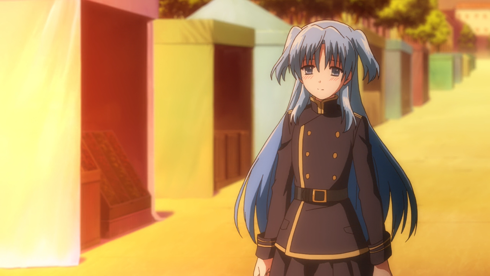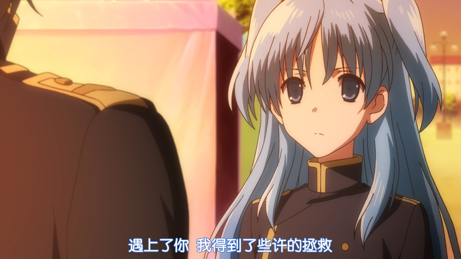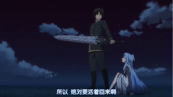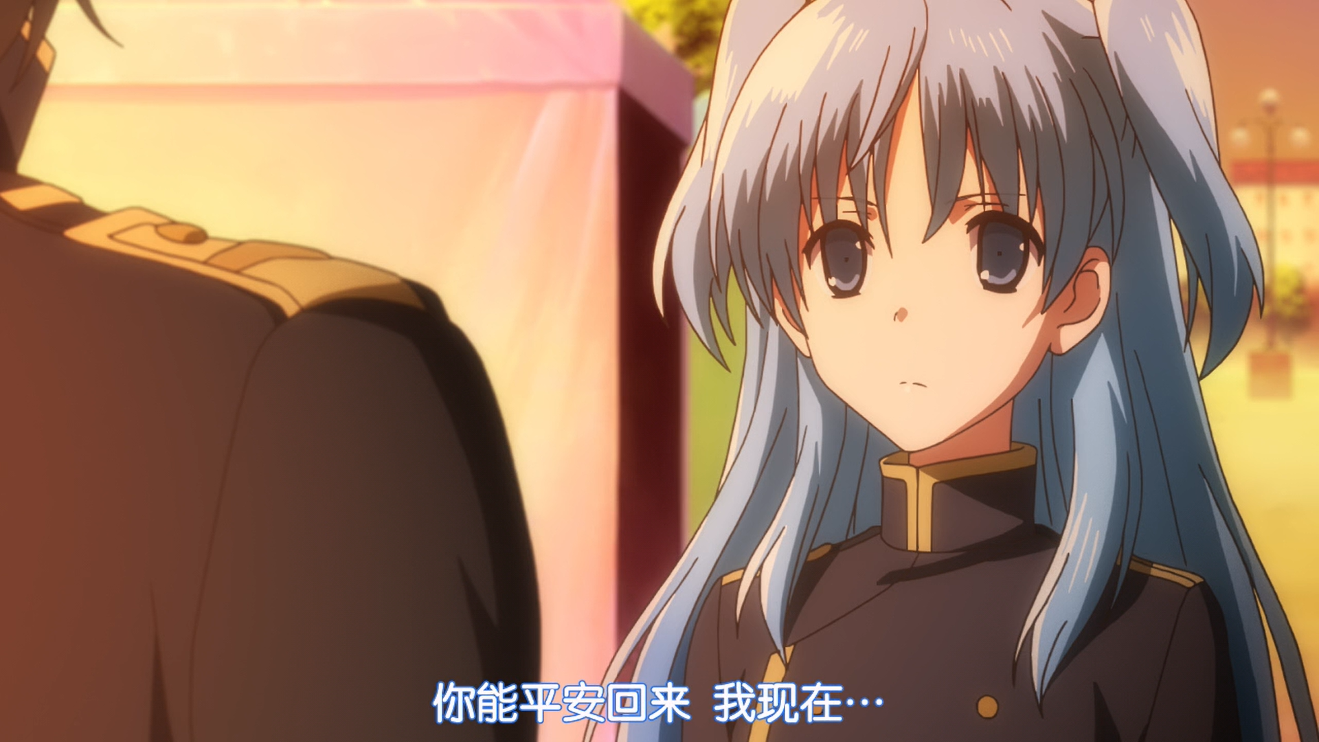 男主威廉因获职军方特殊兵器仓库管理员而得以与身为特殊兵器的蓝发女孩珂朵莉再度见面,整体剧情温度还处于一种迷梦般的温馨中。紧接着,ED过后的片段里,便交代出了威廉的第一个承诺,也是能让去参加最后战斗的他再度回家的理由: