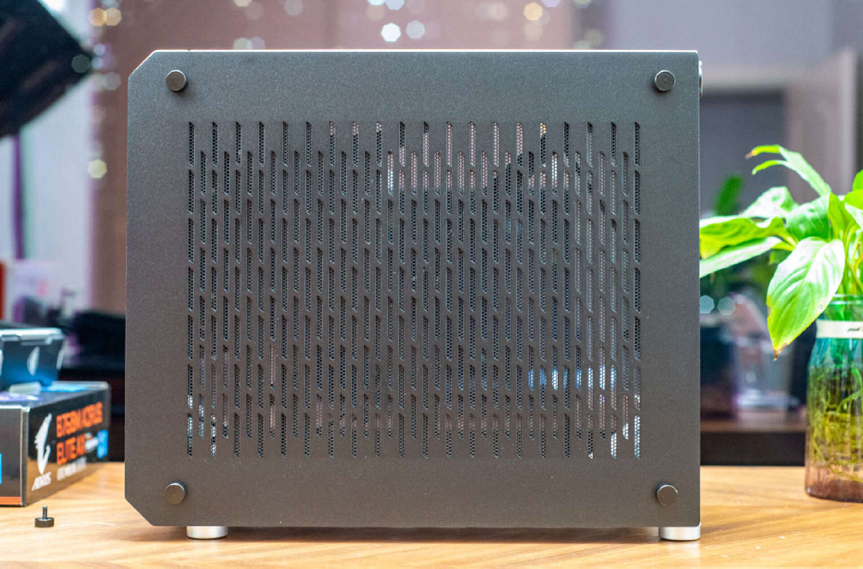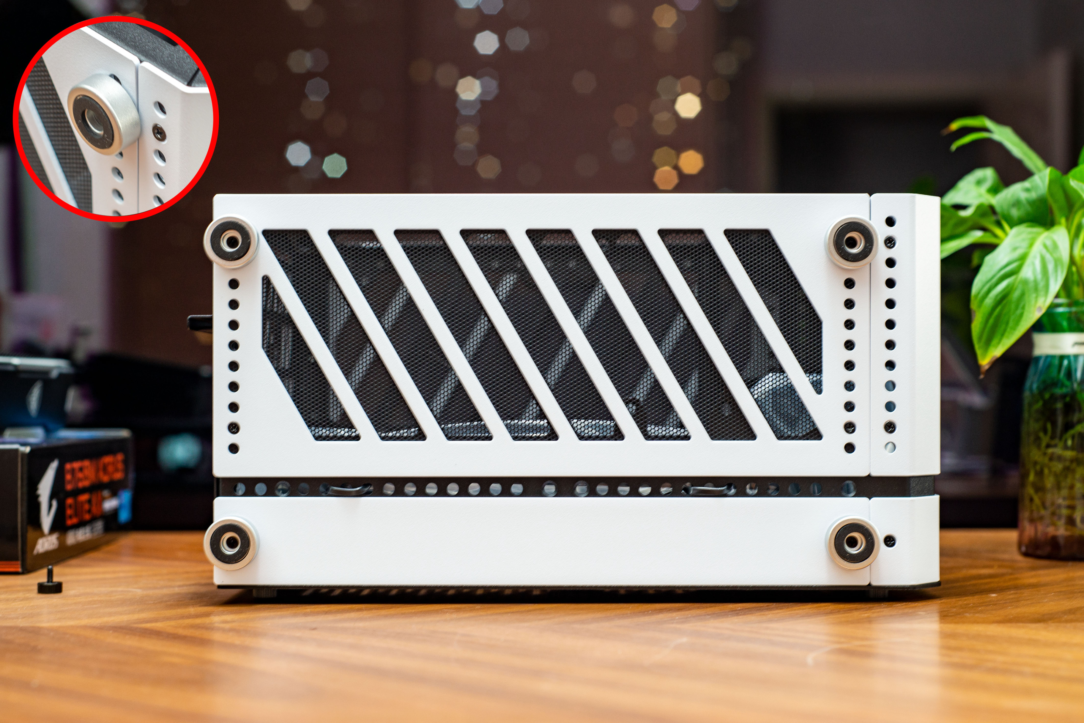 ▼底部开孔 + 防尘网的组合,可以说四方八面都通风,四个铝合金 CNC加工脚垫,质感十足。