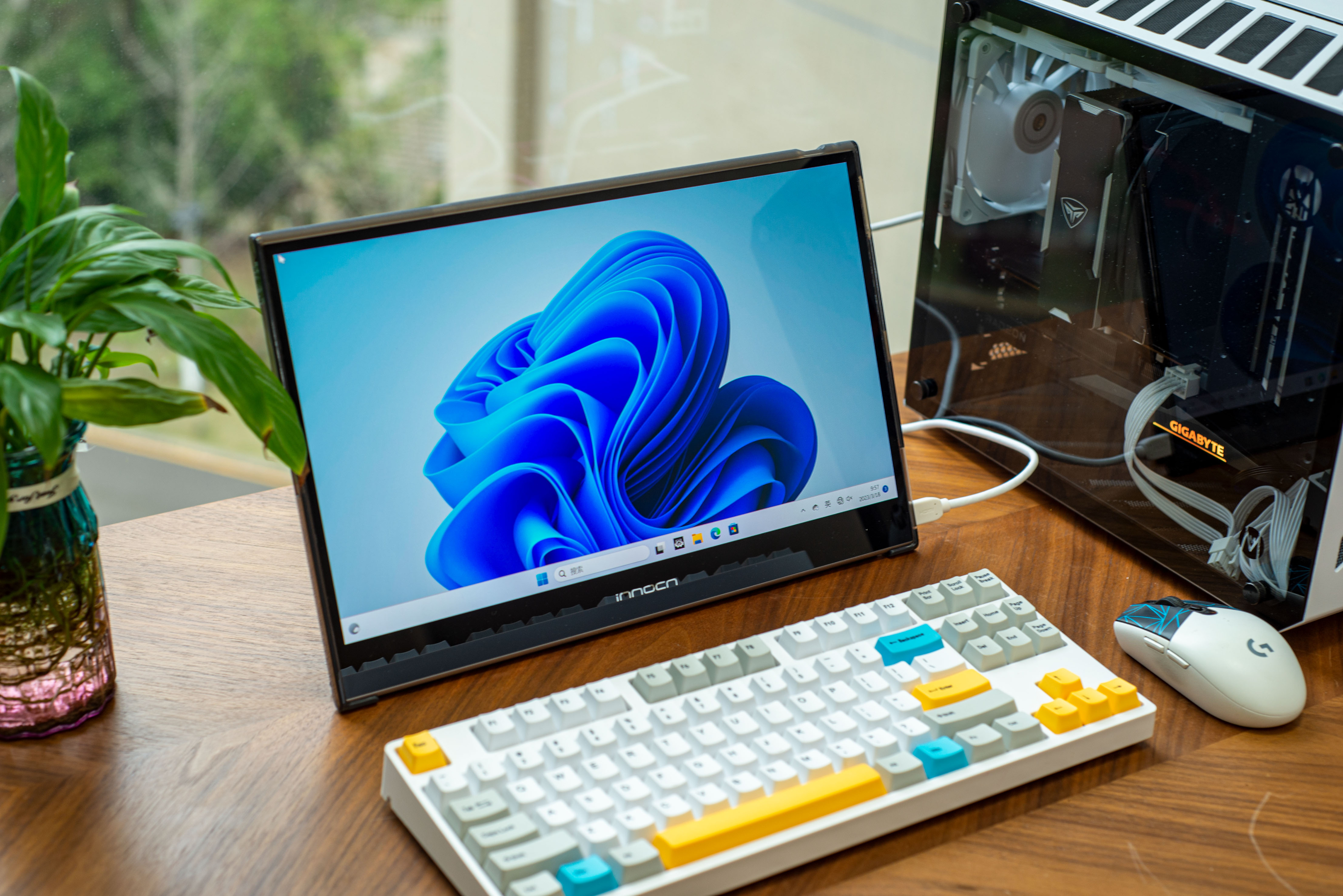 ▼装机屏幕用的 INNOCN 15Q1F ,屏幕采用的 OLED 技术,显示效果出色,最关键的是这货支持触控,而且自带电池,装机调试都特别方便。