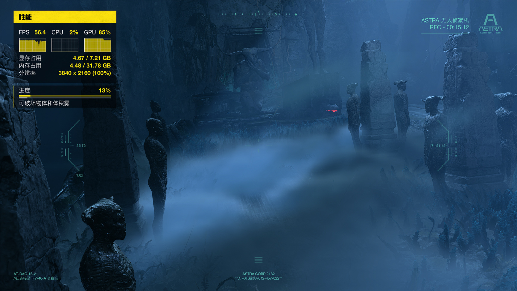 ▼4K 分辨率,启用预设高画质,自动 FSR。平均帧率 不到20