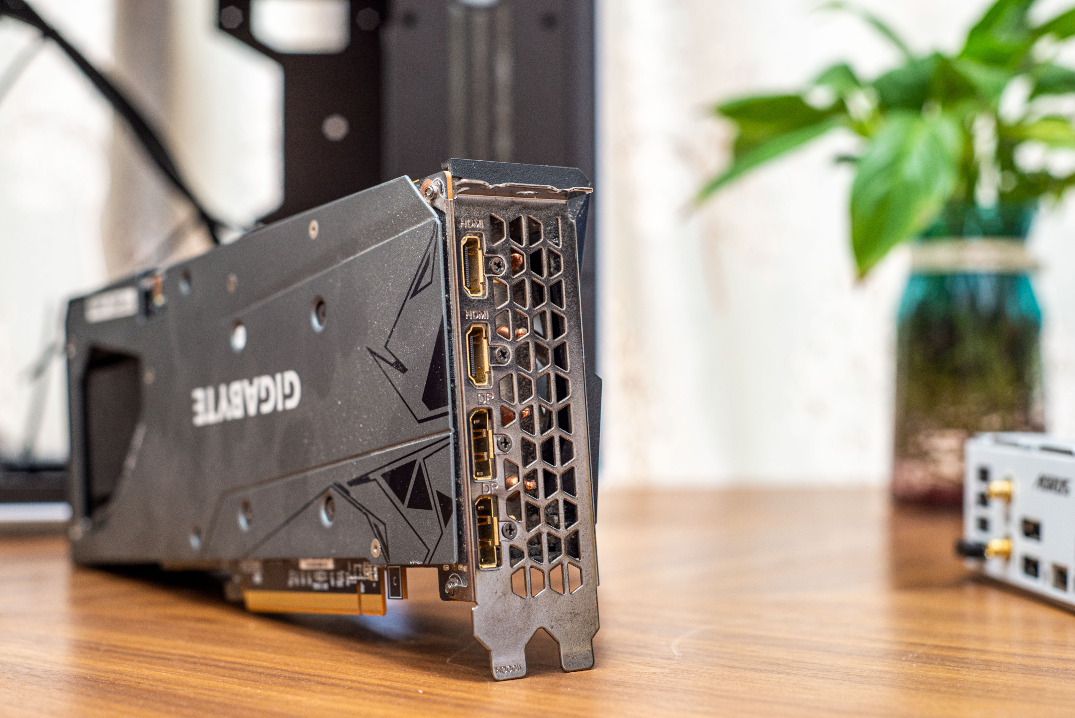 ▼整体长度 282 mm,大部分紧凑型机箱都可以顺利安装,4个显示输出接口,DisplayPort 1.4a 接口 X 2,HDMI 2.1接口 X 2,接口都进行了镀金处理,I/O挡板也有电镀工艺,整体质感相当不错。