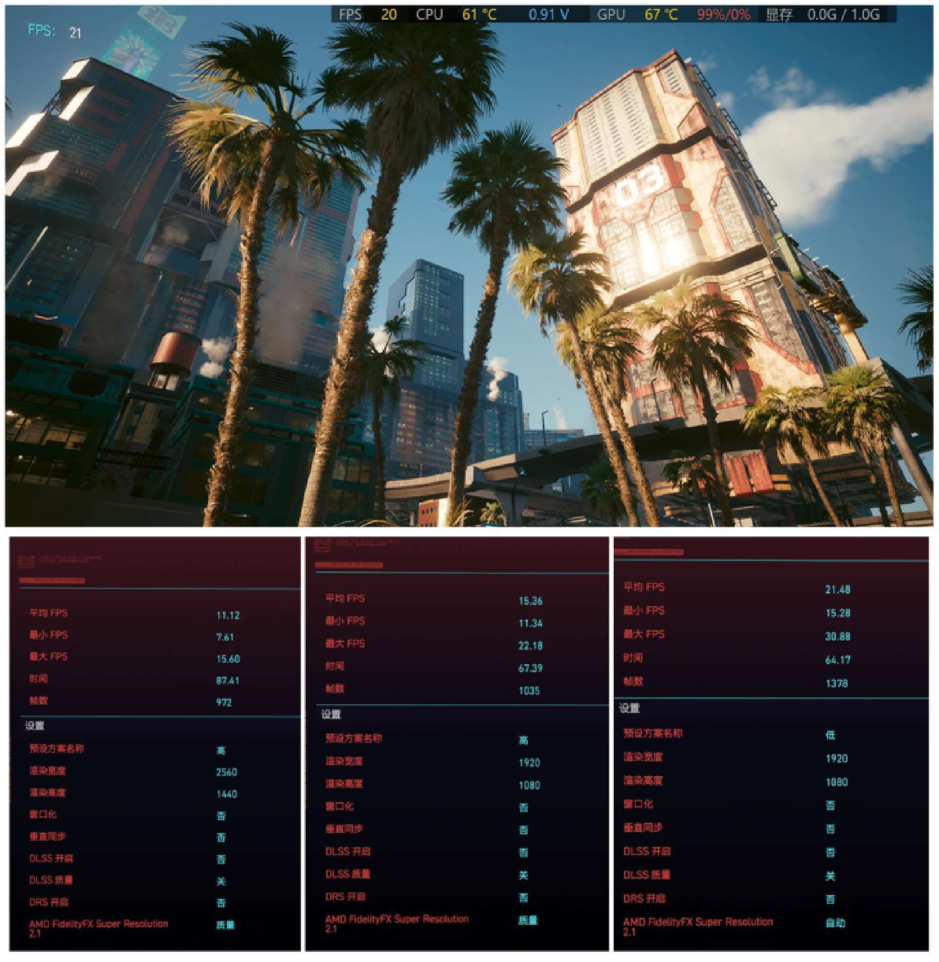 ▼显卡杀手赛博朋克2077,对于 XE 核显来说还是过于为难它了。实测下来,1080P 分辨率预设低画质下能达到 20+ FPS,整体游戏体验不算优秀。