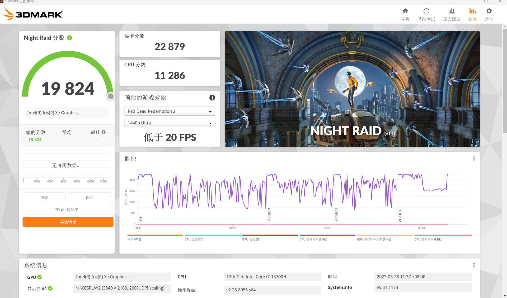▼3DMark 中的 NightRaid 测试 针对的就是集成显卡,实测下来