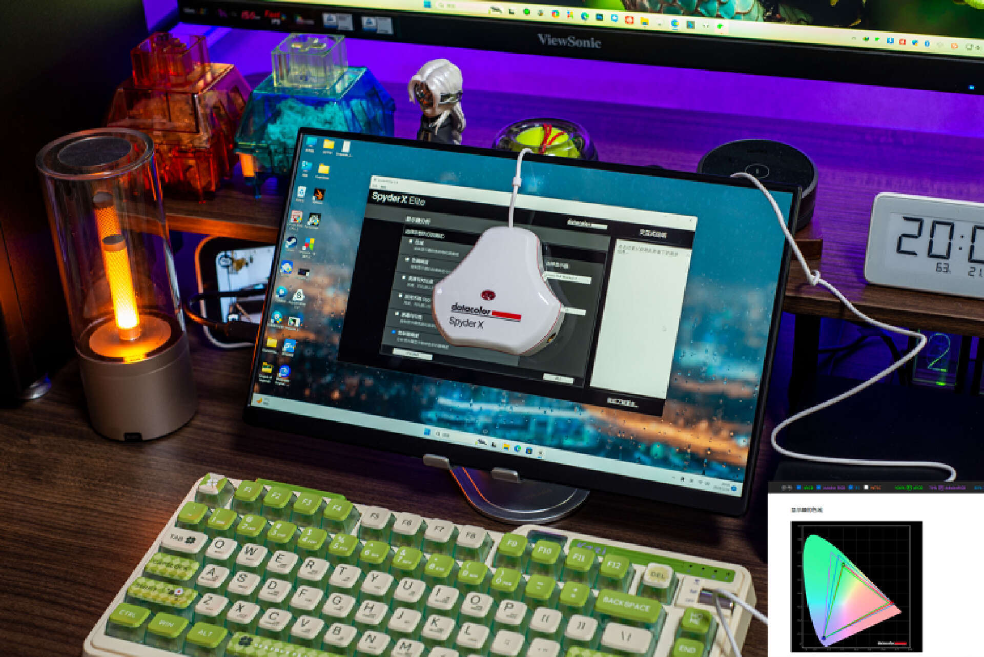 ▼尺寸虽小重量虽轻,素质倒是毫不马虎。 3840X2160 高分屏,峰值亮度 400cd/m²。利用红蜘蛛简单测试了下,sRGB色域覆盖100%。色调响应曲线2.1,色准 delta E平均1.89,不到千元的便携屏,做到这个素质很不错了。
