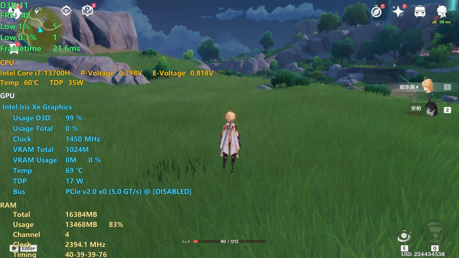 游戏设置 1080P 分辨率,高画质下空旷区域 40+FPS,战斗时帧率会下降到 35FPS 左右,比较完美的设置就是 1080P + 中等画质,基本上全程保持 40FPS 左右。