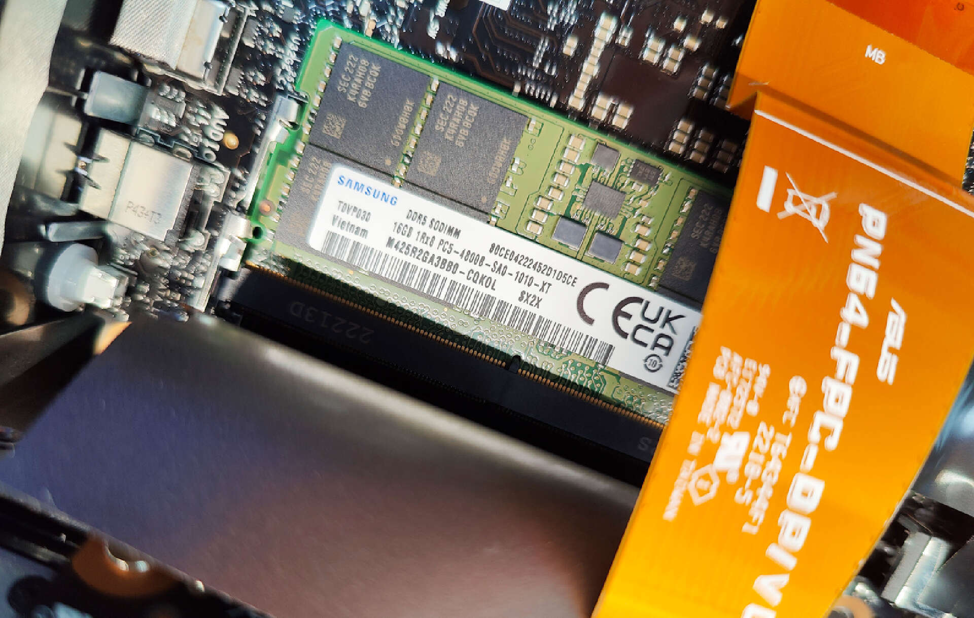 ▼破晓 X 支持新一代的 DDR5 内存,内部搭载双内存通道,最大支持 64GB 内存组合。我这台主机标配三星 DDR5 4800Mhz 16GB。有一说一,双通道对核显提升还是比较大,后面的测试也印证了我的说法。