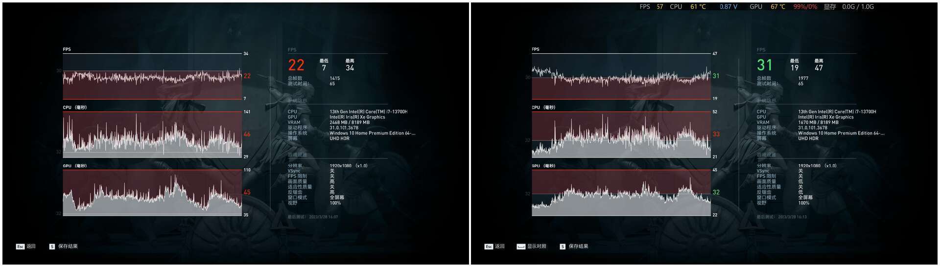 1080P 分辨率,预设画质低,平均帧率31FPS,最高帧率 47FPS。