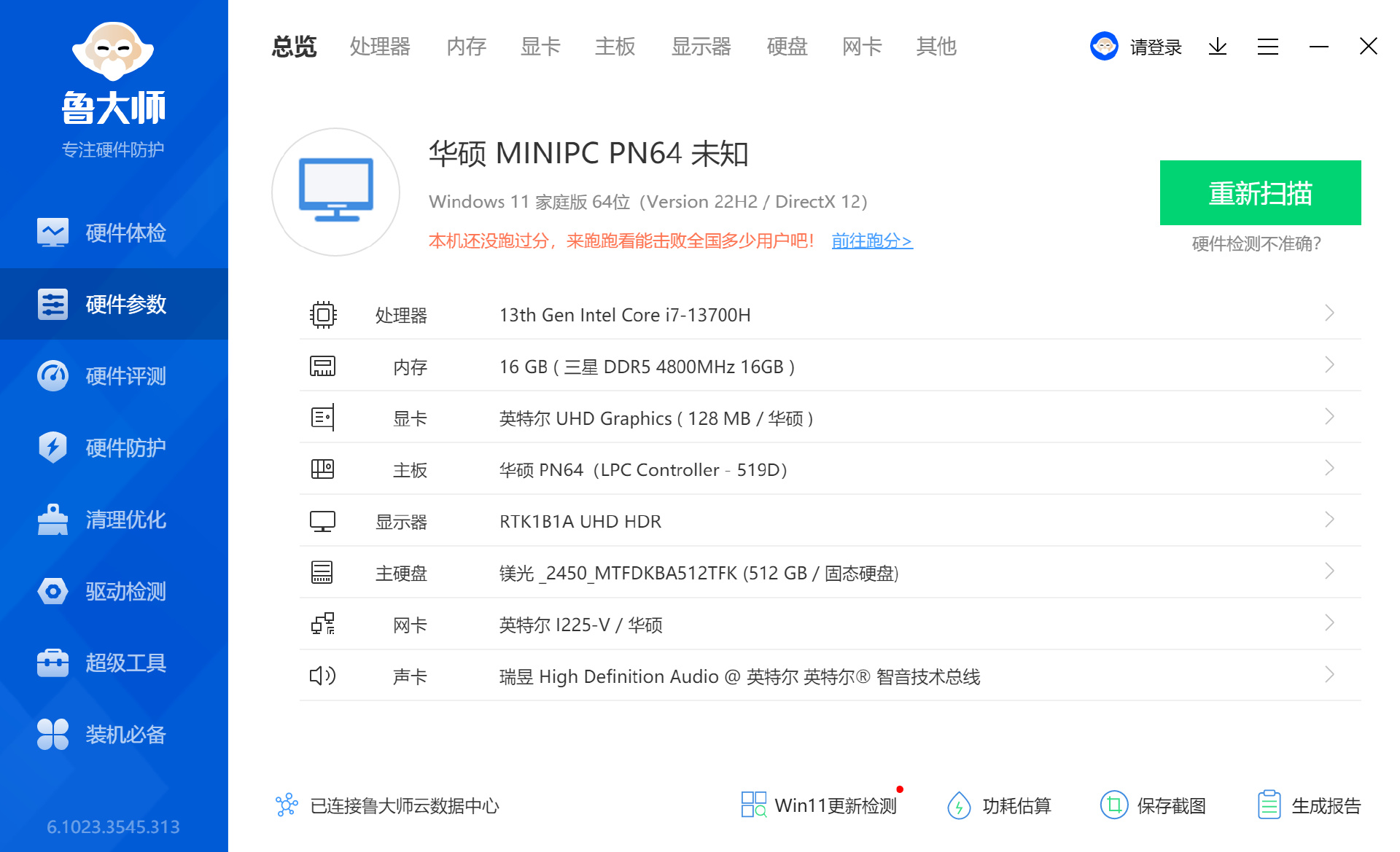 性能方面,13700H 基本就是当前mini主机第一梯队的配置,日常应用、影视欣赏以及单机网游都能胜任,不过单通道内存对整机性能影响较大,预算充足建议直接拉到 16G*2 的组合。