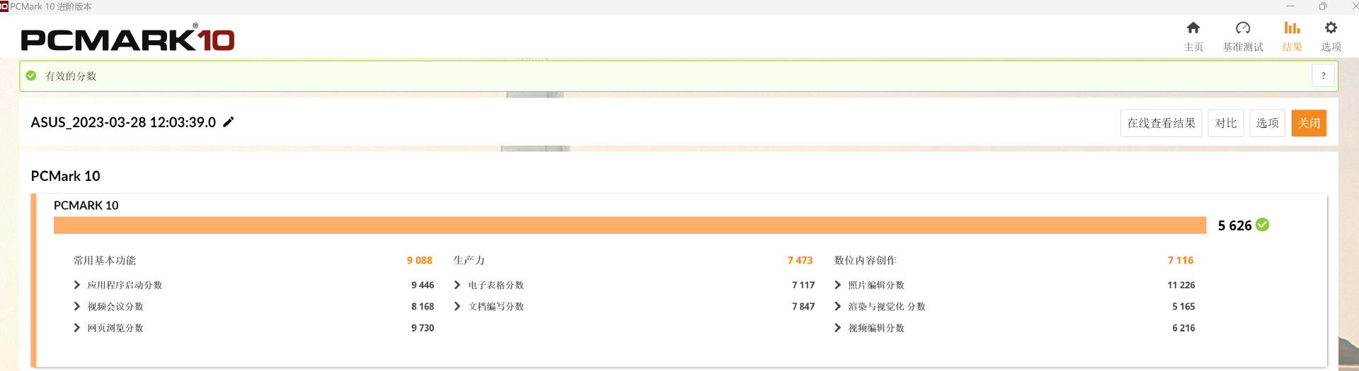 总分 5626,其中常用基本功能9088分,生产力7473分,数位内容创作7116分。
