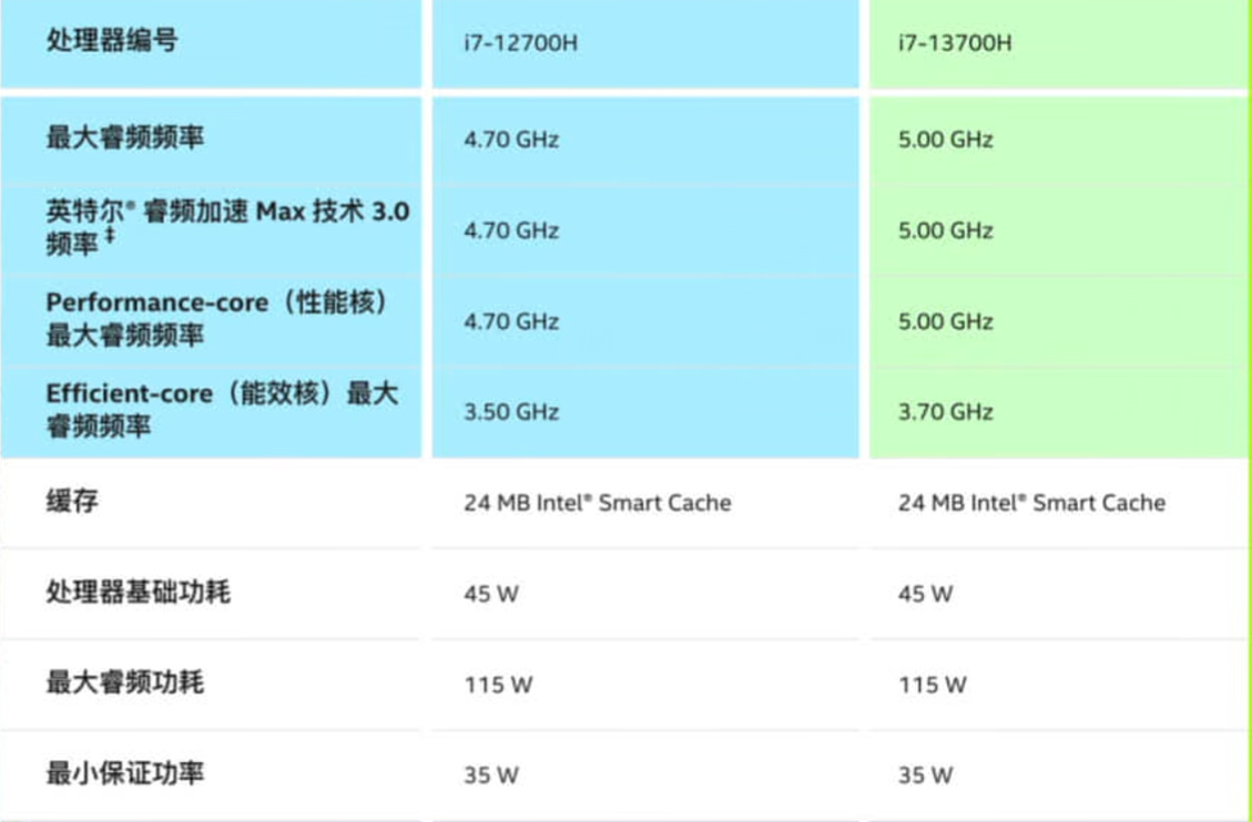 ▼破晓X mini 是首款搭载 13代 酷睿 i7-13700H 的机型,处理器同样为6大8小14核心20线程,相比上代 12700H,本次的13700H 主要提升在频率和内存支持。大核提升到5.0GHz 最高频率,小核提升到3.7GHz 最高频率。内存方面最高支持到了6400MHz(12700H最高只支持5200MHz)。