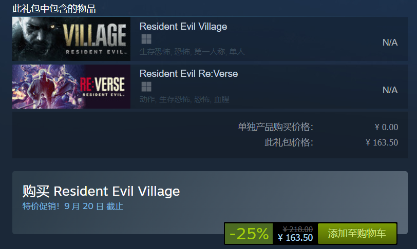 就在不久前,《生化危机:村庄》的Steam售价永久降至218元。在今天(9.9),我们迎来了该作永久降价后的新史低价格163.5元,折扣截止到9月20日。小黑盒现有折扣低至139元,感兴趣的朋友们可以考虑入库。